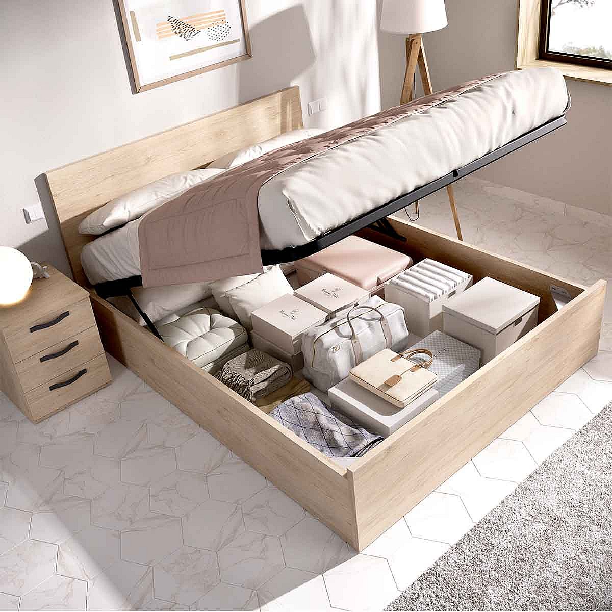 Canapé abatible de MADERA Gran Capacidad Ártico 160x200cm