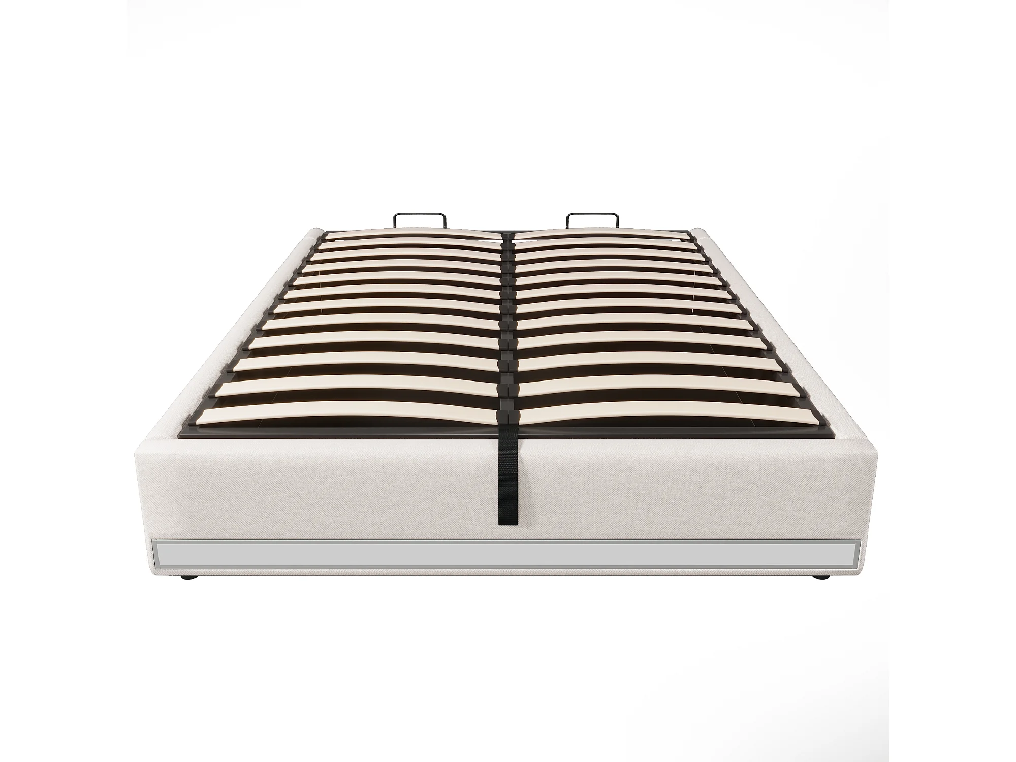 Cama con almacenaje 140 x 200 cm Cama para adultos con iluminación LED y USB, sin cabecero - Lino beige (sin colchón)