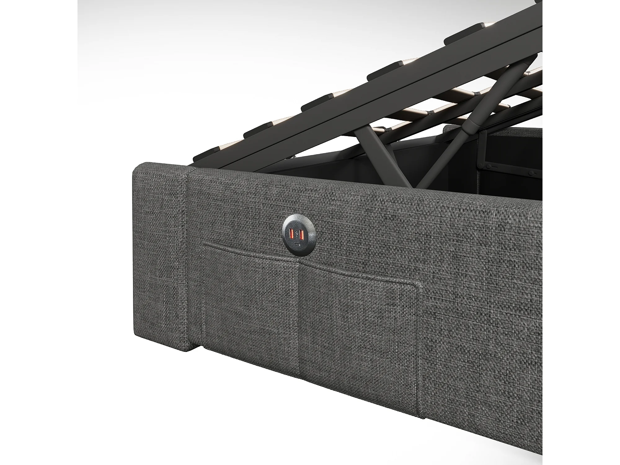 Cama con almacenaje 140 x 200 cm Cama para adultos con iluminación LED y USB, sin cabecero - Lino gris (sin colchón)