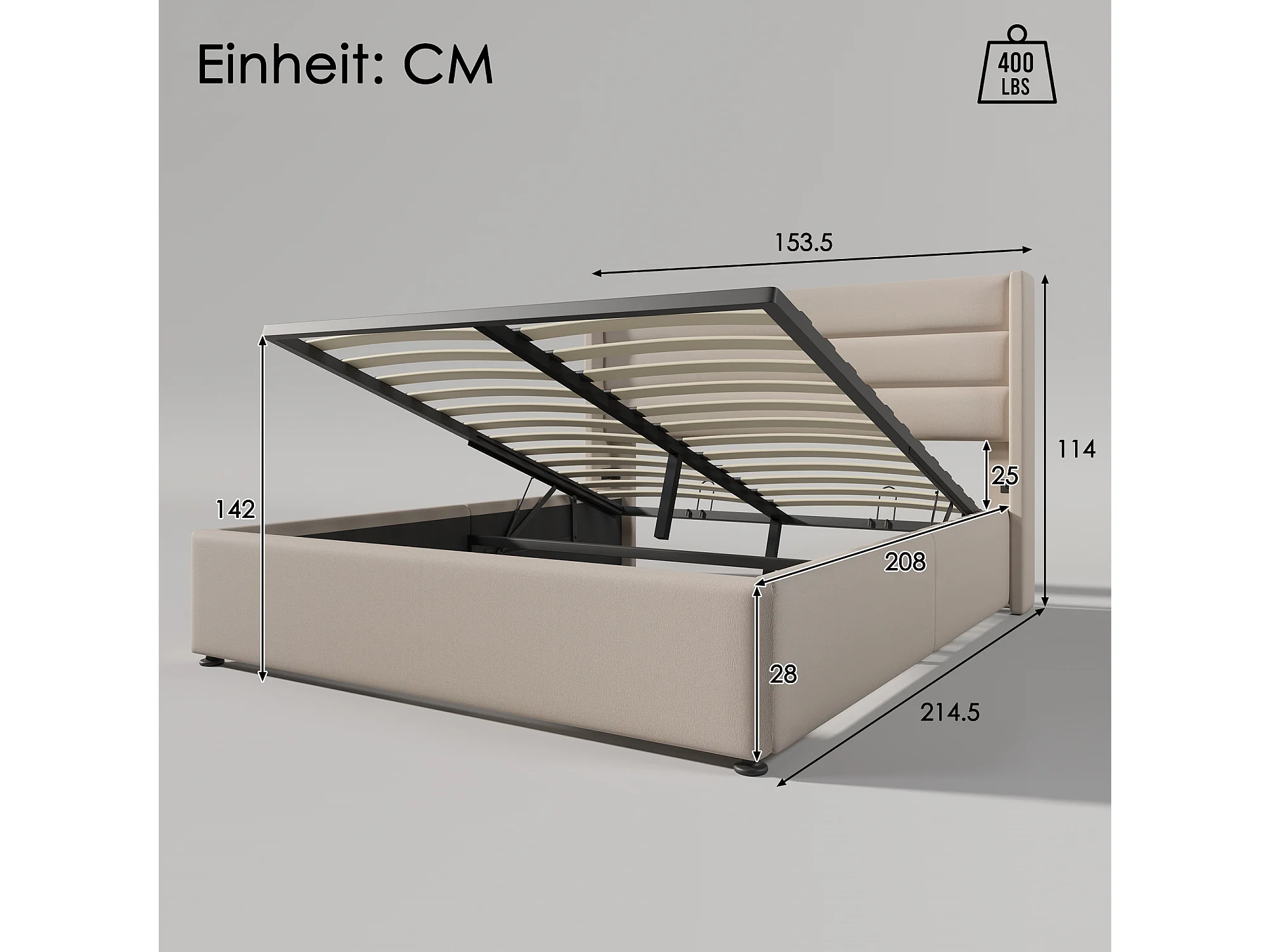 Cama con almacenaje 140x200 cm - Cama para adultos con cabecero - gris beige - colchón incluido