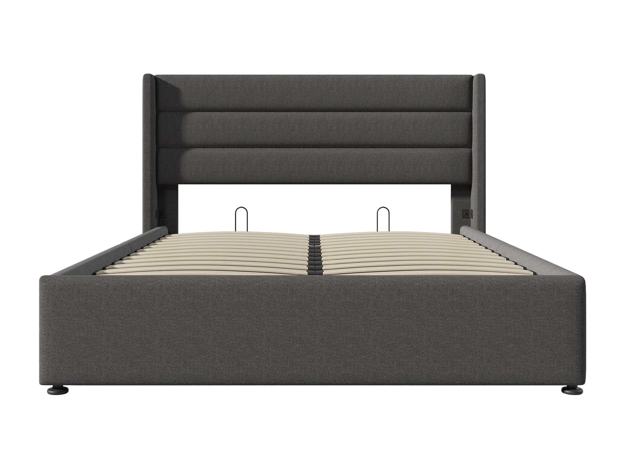 Cama con almacenaje 140x200 cm - Cama para adultos con cabecero - Gris lino - Colchón incluido