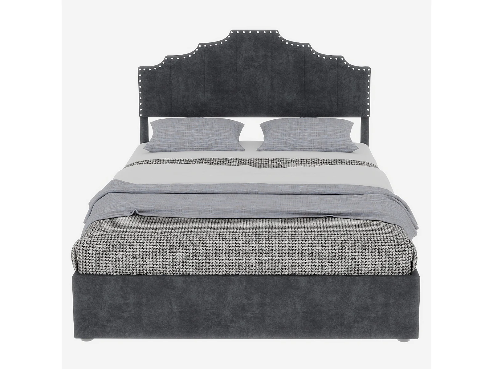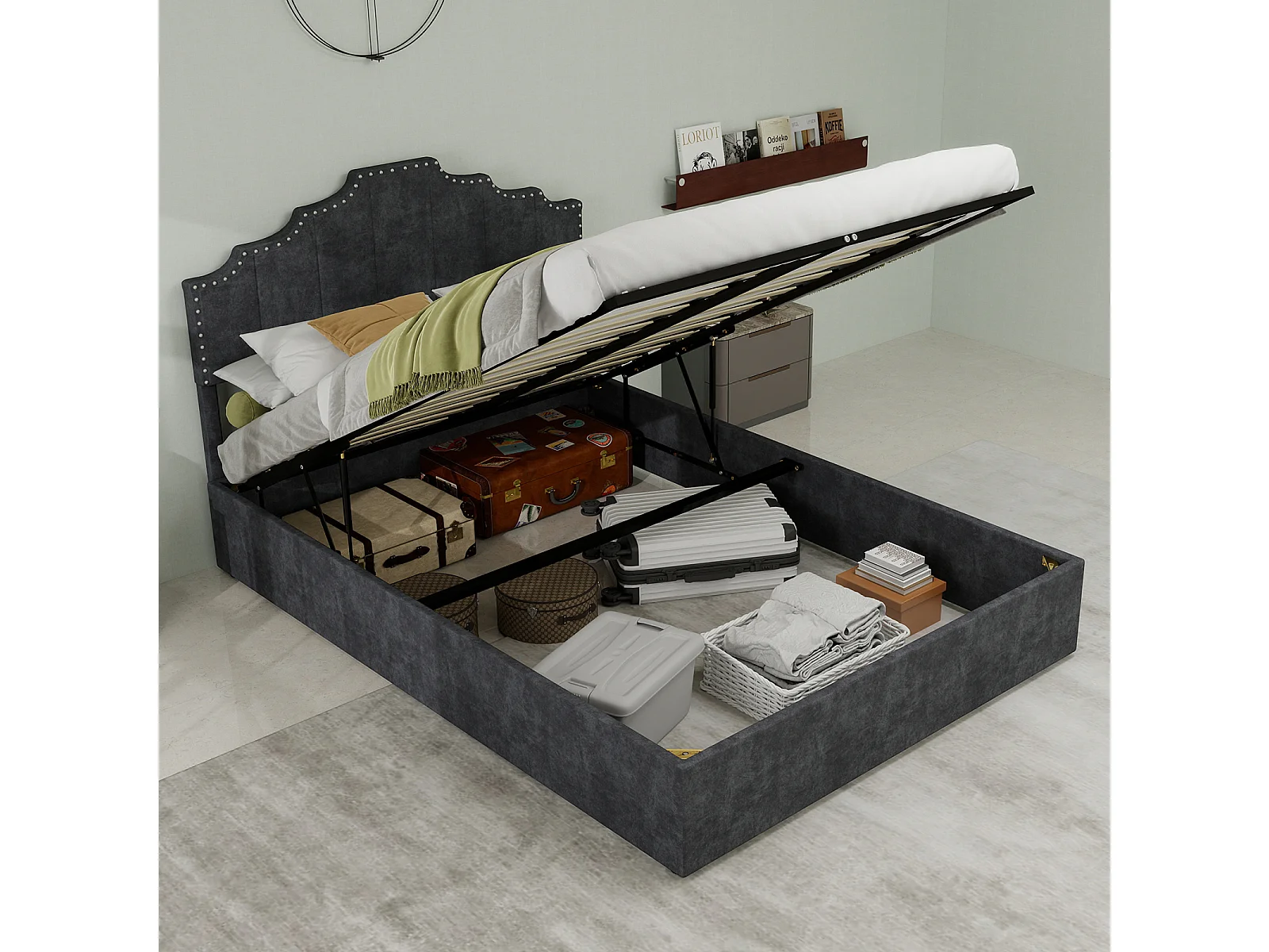 Cama con almacenaje 140x200 cm con cabecero acolchado y somier de láminas - terciopelo - gris (sin colchón)