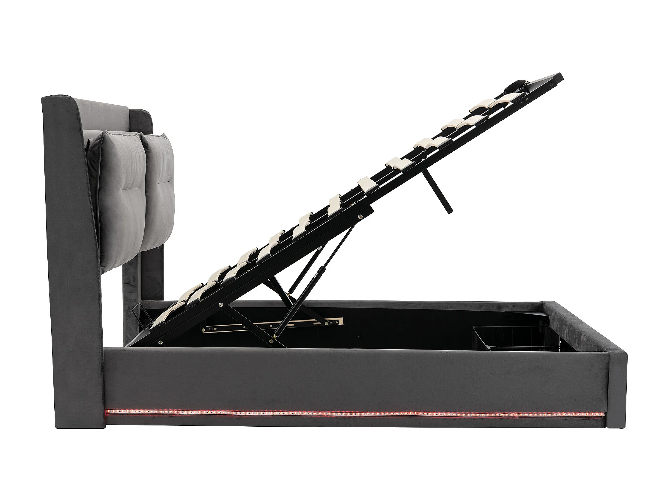Cama con almacenaje 160x200 cm, cama para adultos con 1 cajón y cabecero tapizado, luz LED - terciopelo gris (sin colchón)