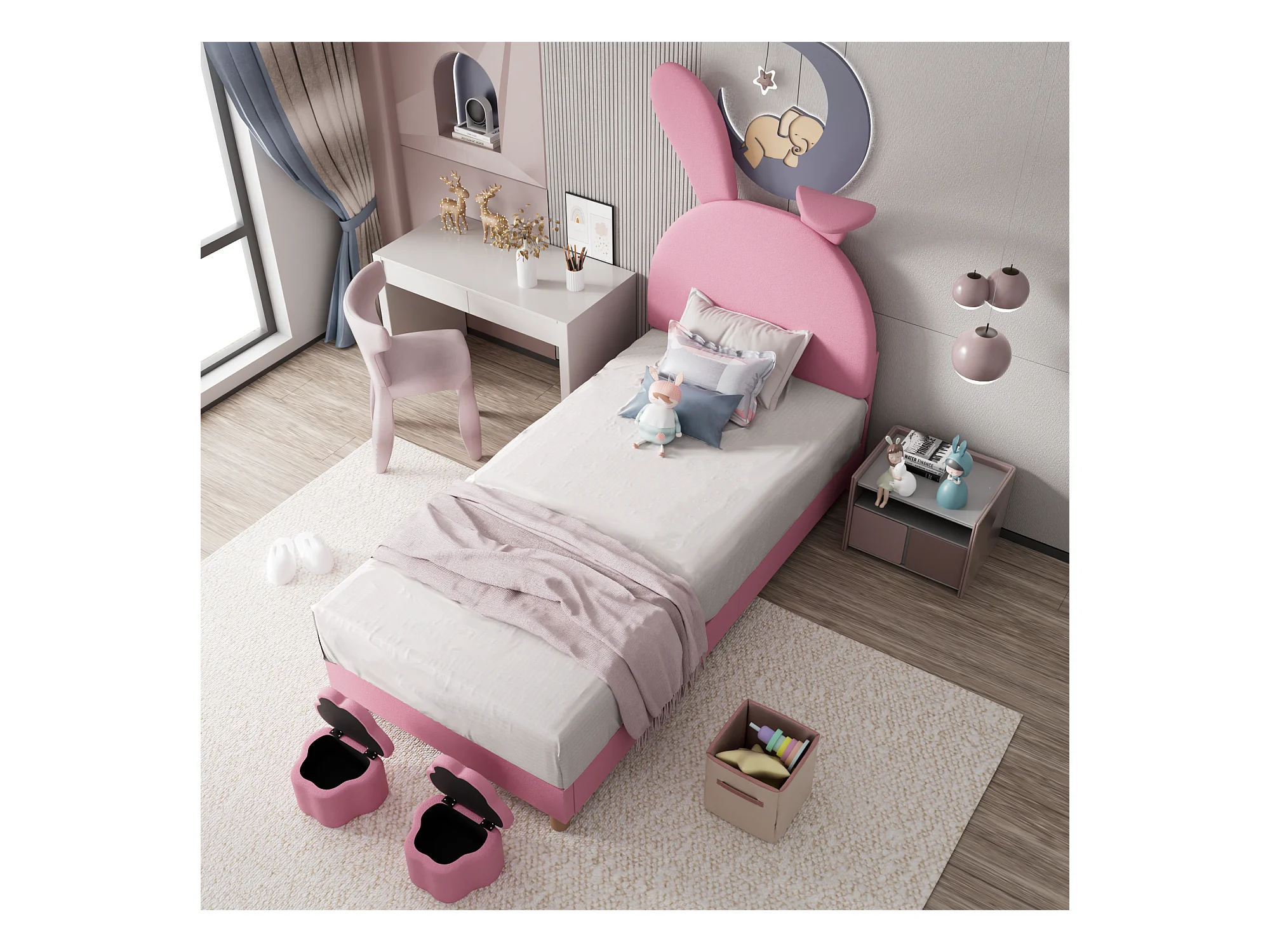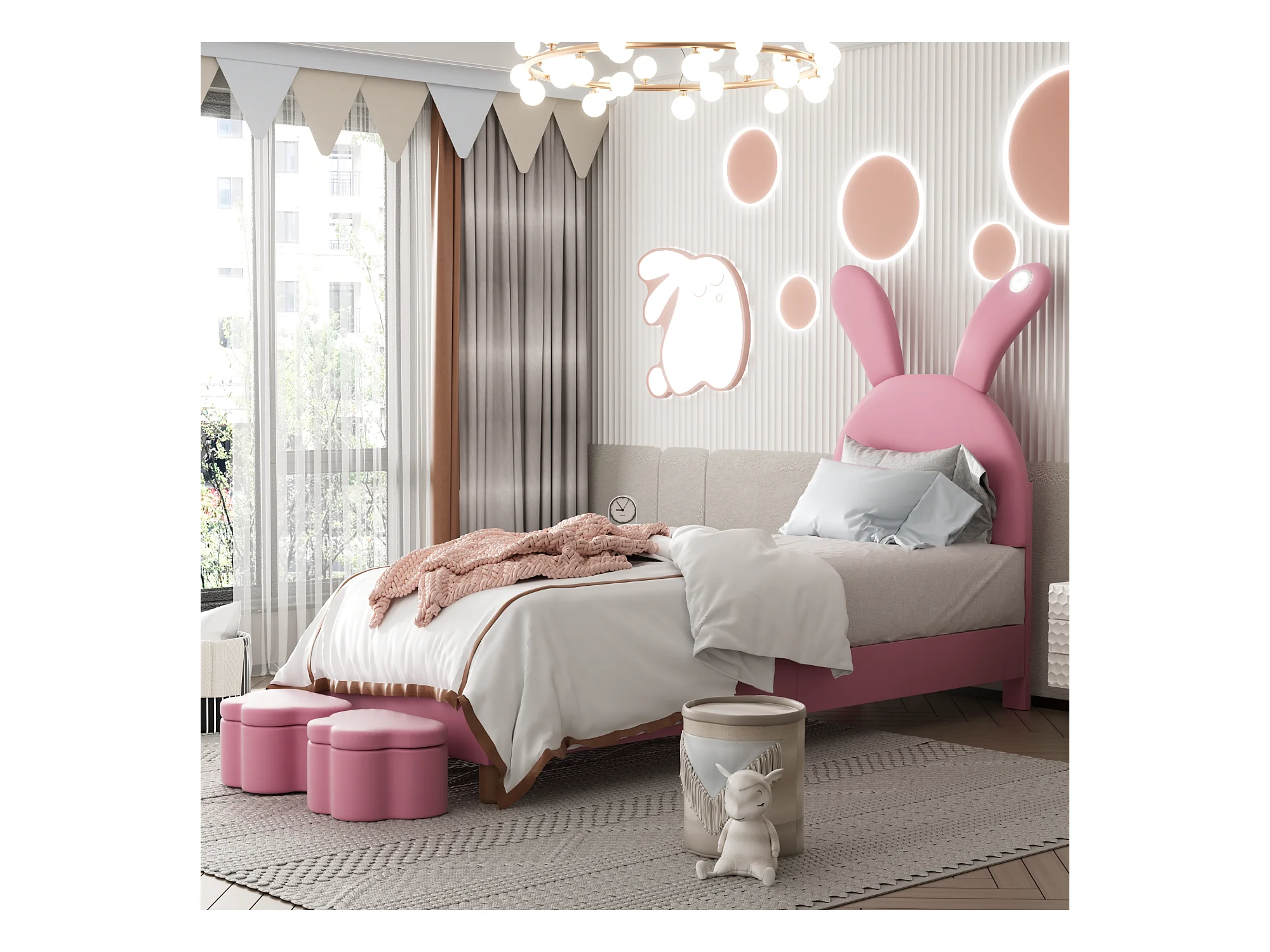 Cama individual tapizada 90x200cm - Cabecero en forma de flor, Somier de láminas de MDF, Tejido terciopelo estilo escandinavo - Rosa