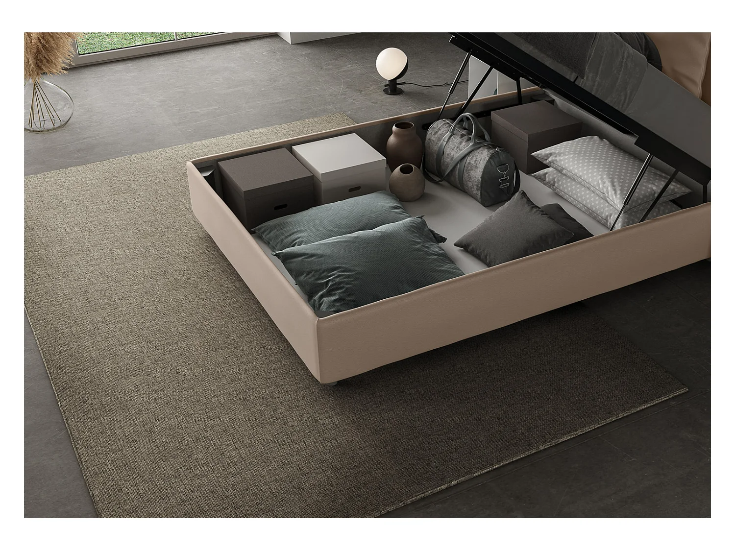 Cama queen size Mika con contenedor acolchado 120x190 símil piel gris tórtola