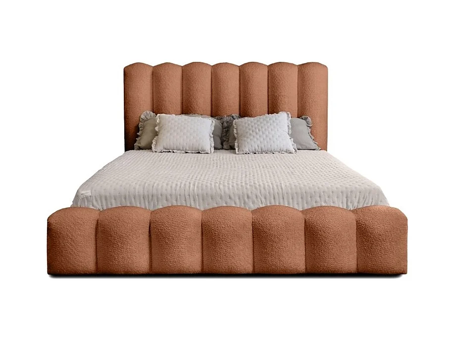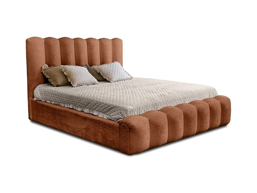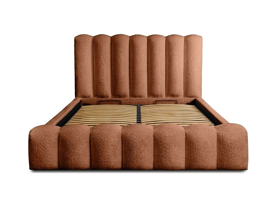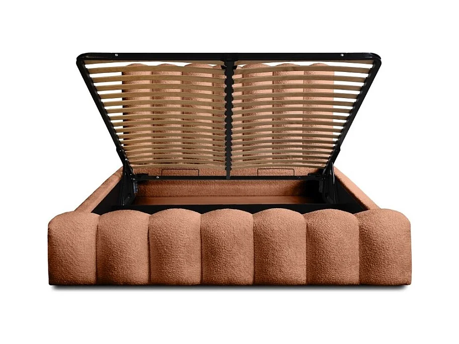 Cama con almacenaje BADJA – Tela bouclé Terracota – 180x200 cm – Somier elevable – Diseño de alta gama
