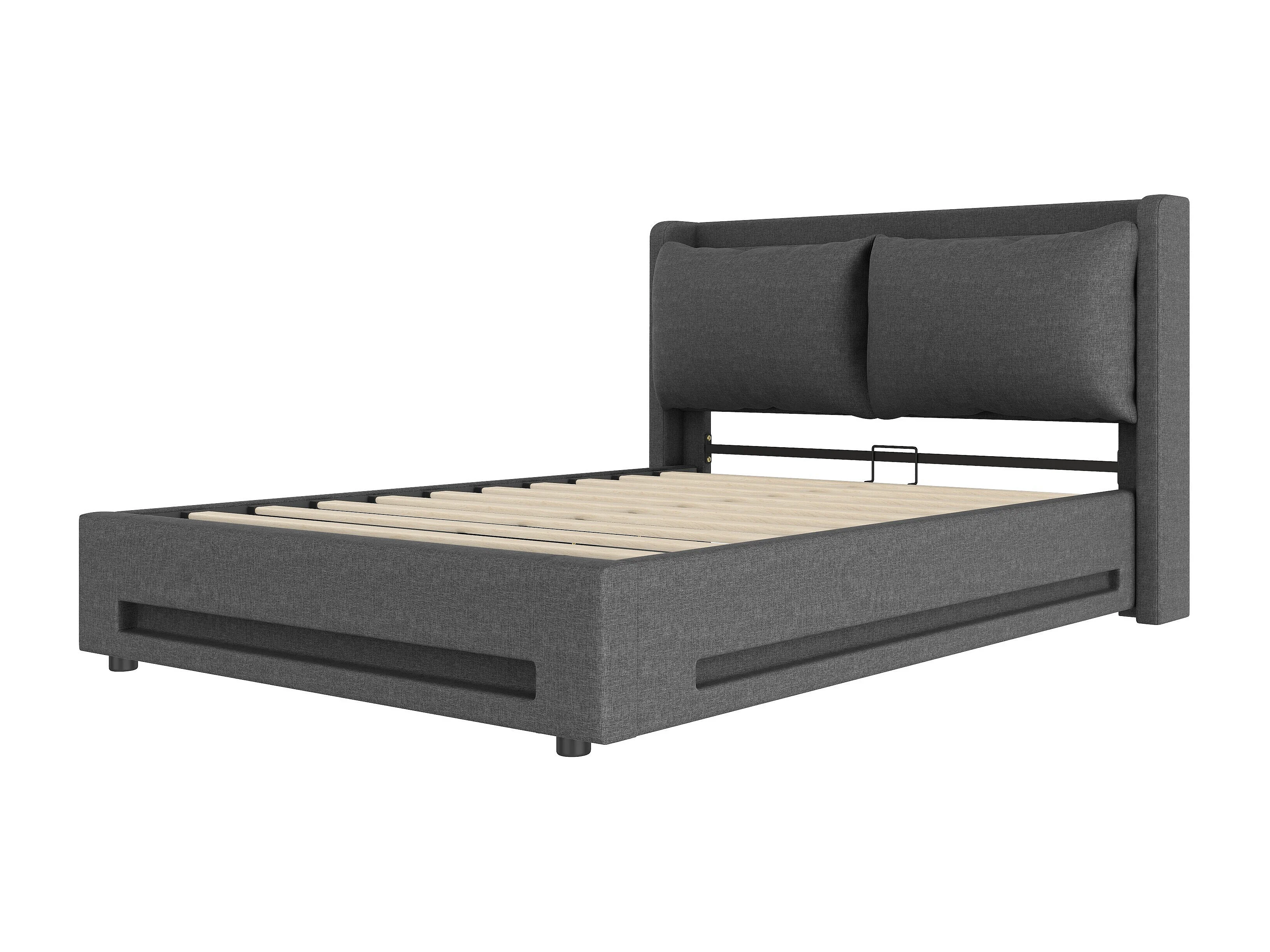 Cama con almacenaje de 140x200 cm, cama de adulto con USB y luces LED, cabecero acolchado - terciopelo gris (sin colchón)