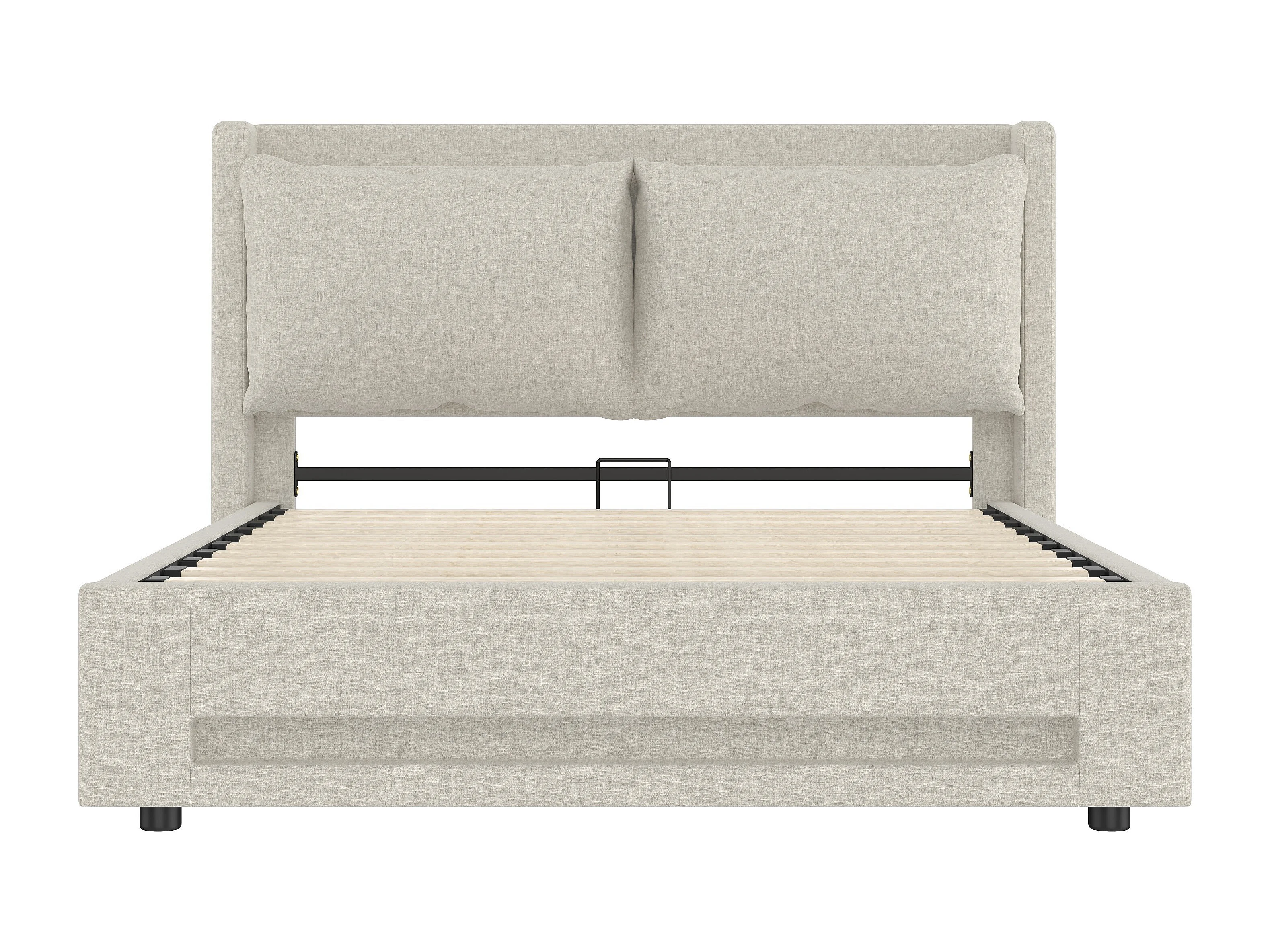 Cama con almacenaje de 160x200 cm, cama doble con USB y luces LED, cabecero acolchado - terciopelo beige (sin colchón)