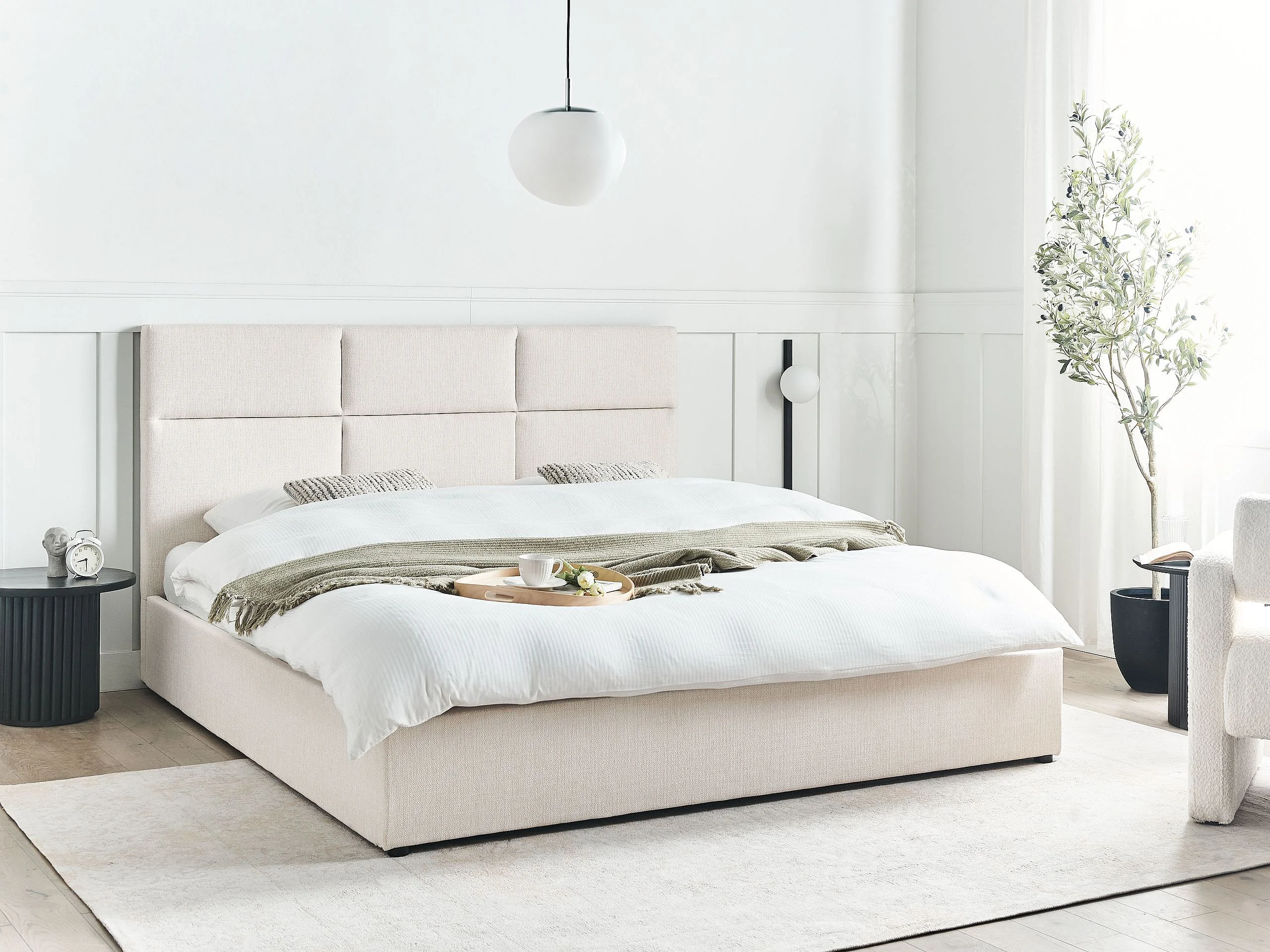 Cama con almacenaje Tela LAGORD 180 x 200 cm Blanco crema