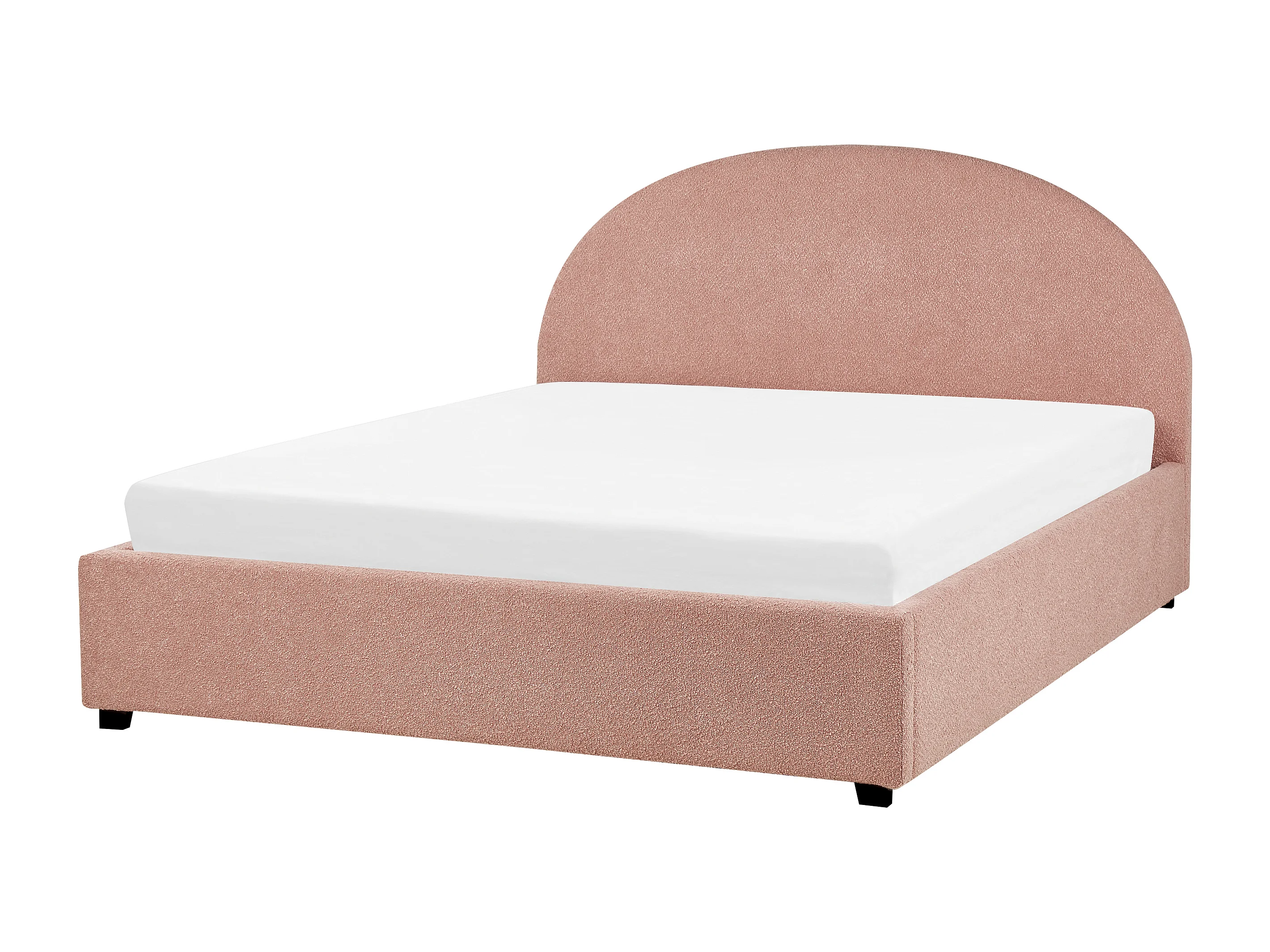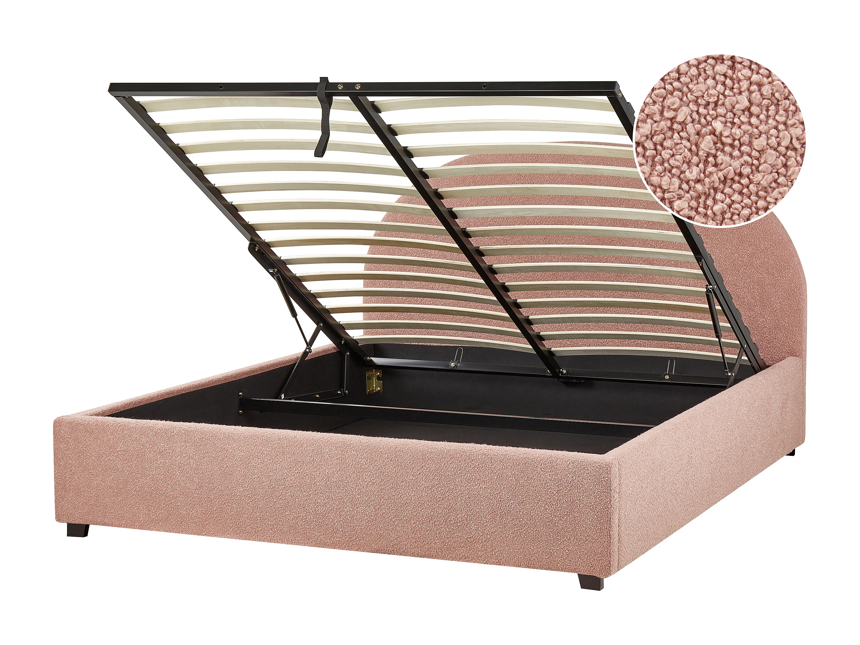 Cama con almacenaje Bouclé VAUCLUSE 160 x 200 cm Rosa pastel