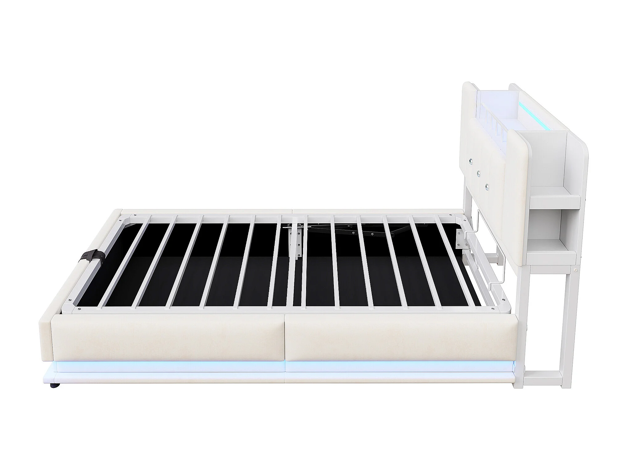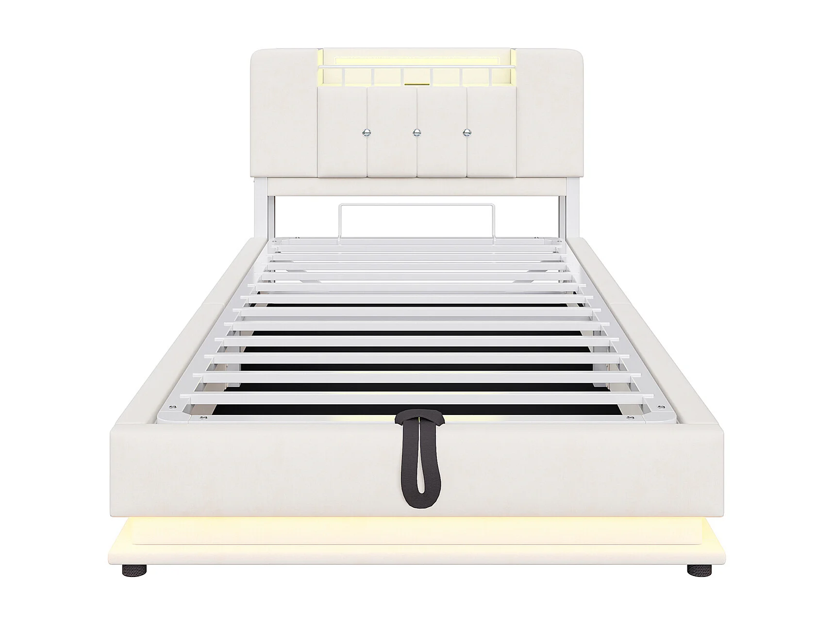 Cama con almacenamiento acolchada 90x200 cm - con luz LED - con puerto USB - terciopelo - beige (colchón no incluido)