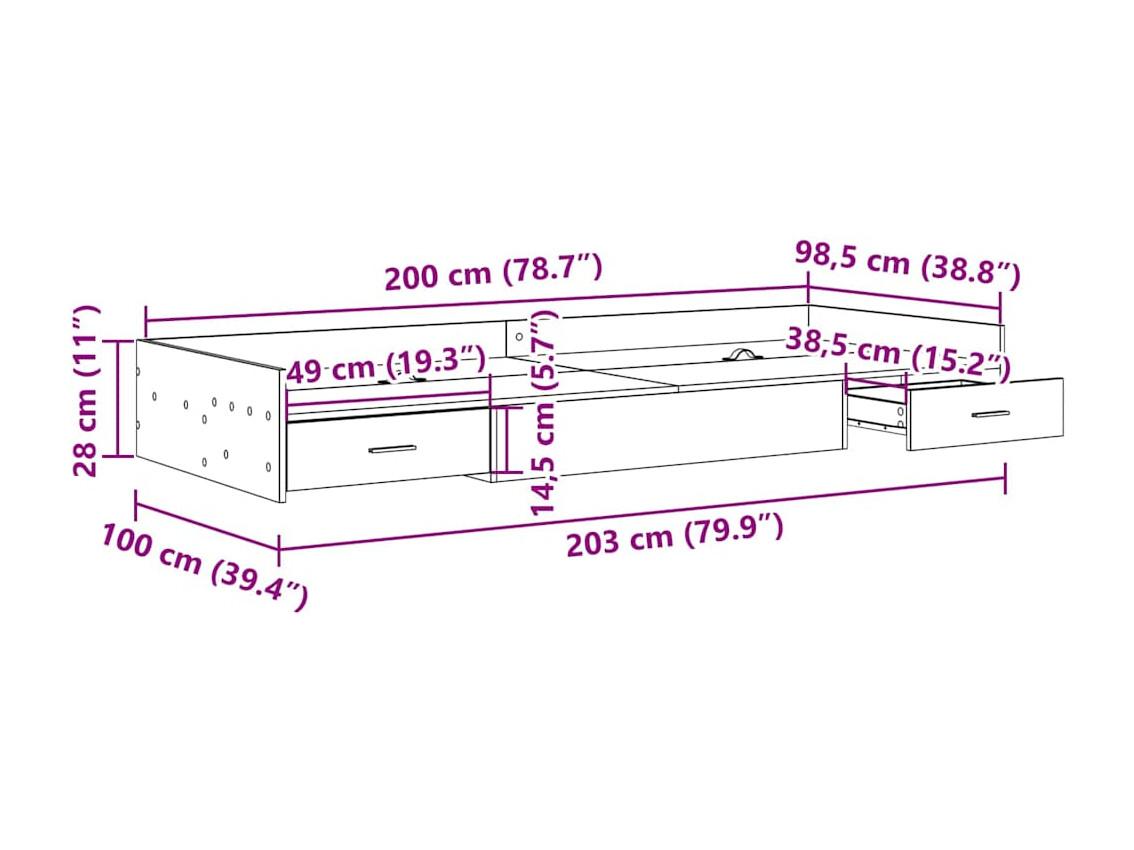 Cama con almacenamiento con cabecera Gris Concreto 100 x 200 cm