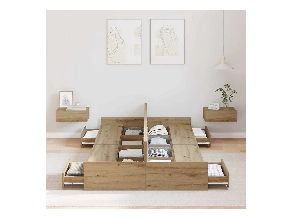 Cama con cajones madera ingeniería roble Sonoma 120x200 cm