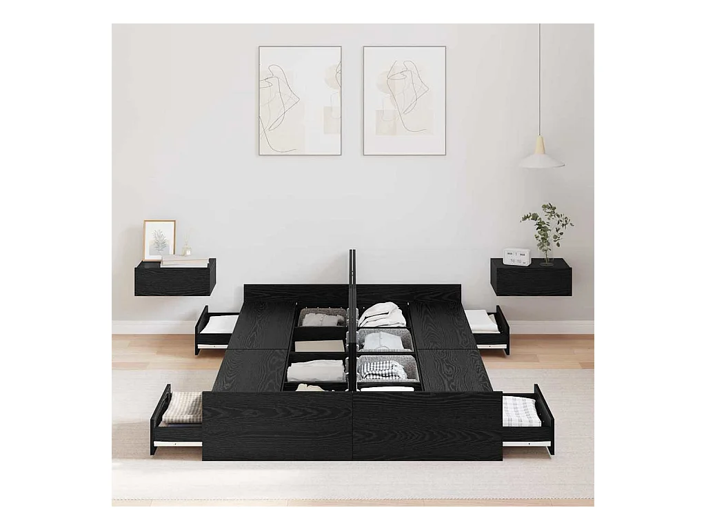 Cama 120x200 cm con cajones madera de ingeniería negro ES257675