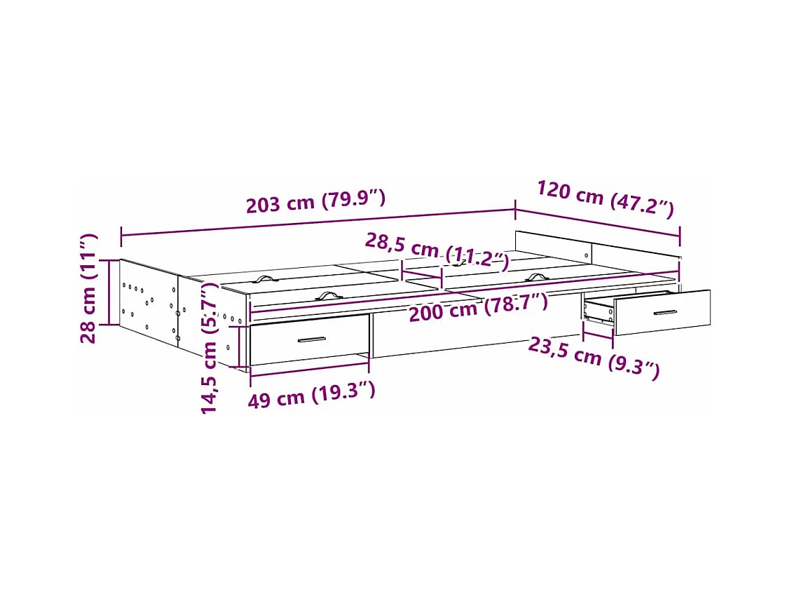 Estructura de cama con cajones Roble artisan 120 x 200 cm