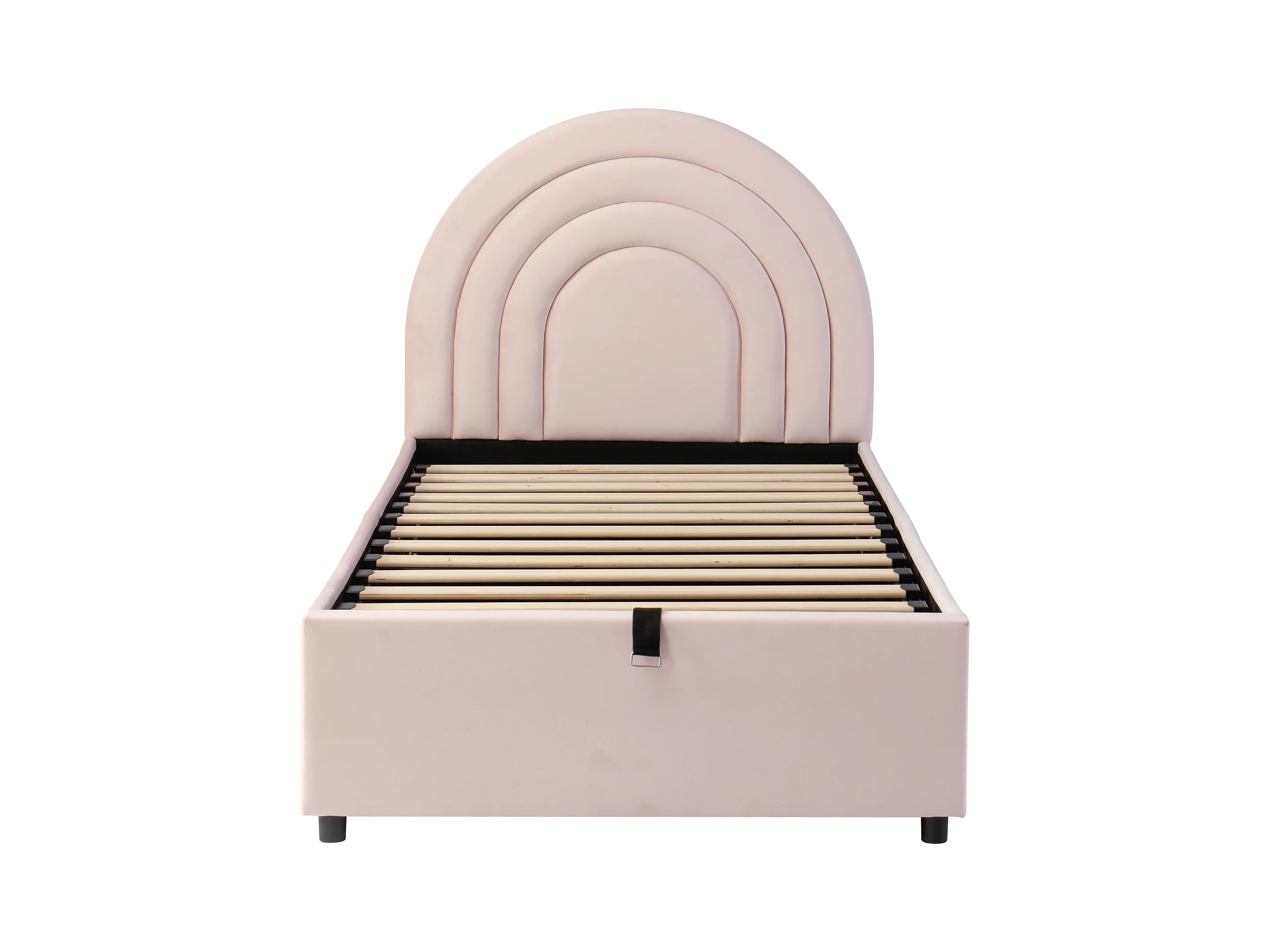 Cama con almacenamiento infantil 90x200 cm - cabecero en forma de arcoíris - Terciopelo - Rosa (colchón no incluido)