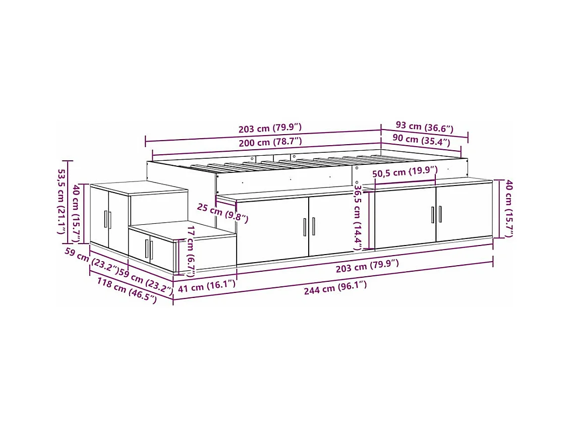Cama con almacenamiento Roble Sonoma 244 x 118 x 53.5 cm