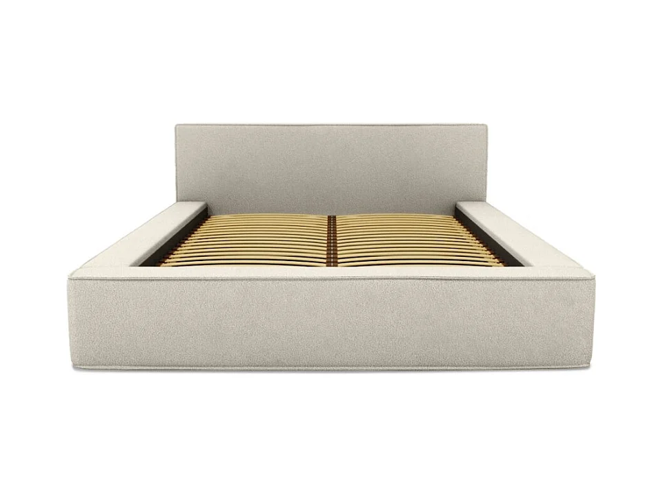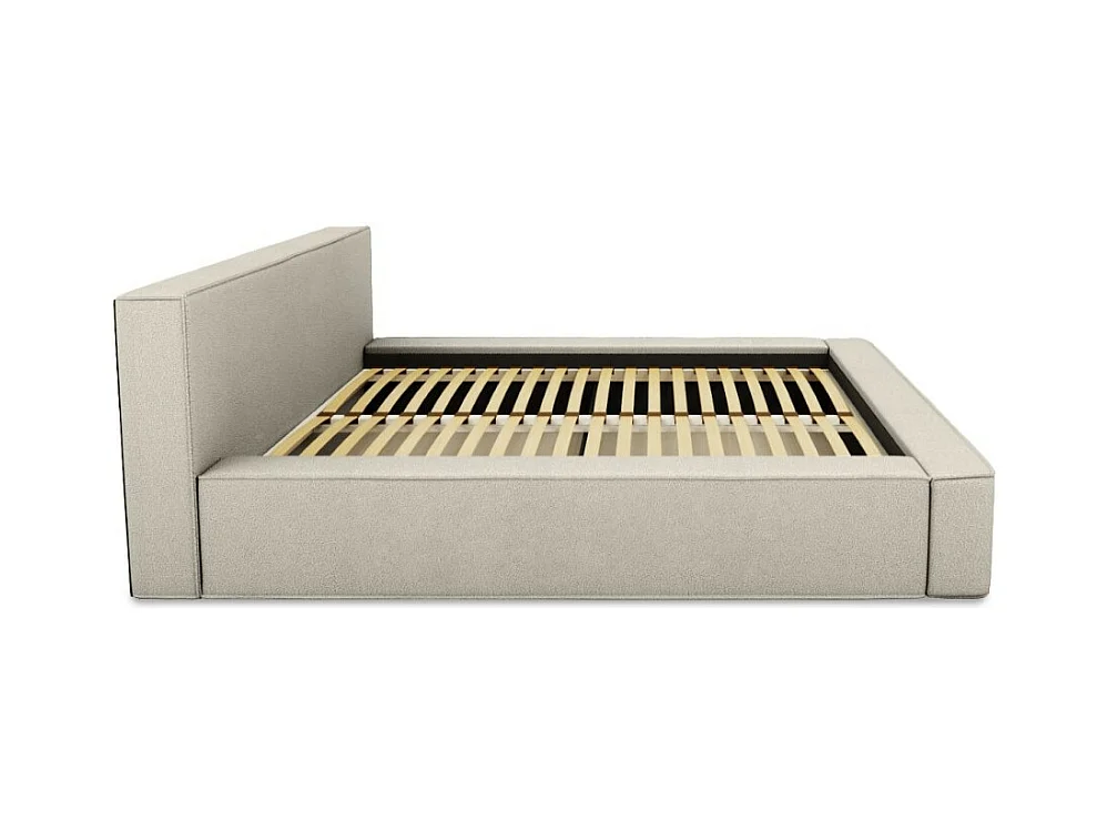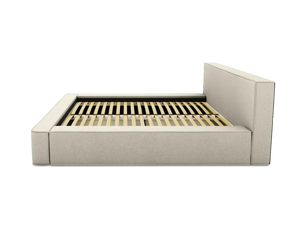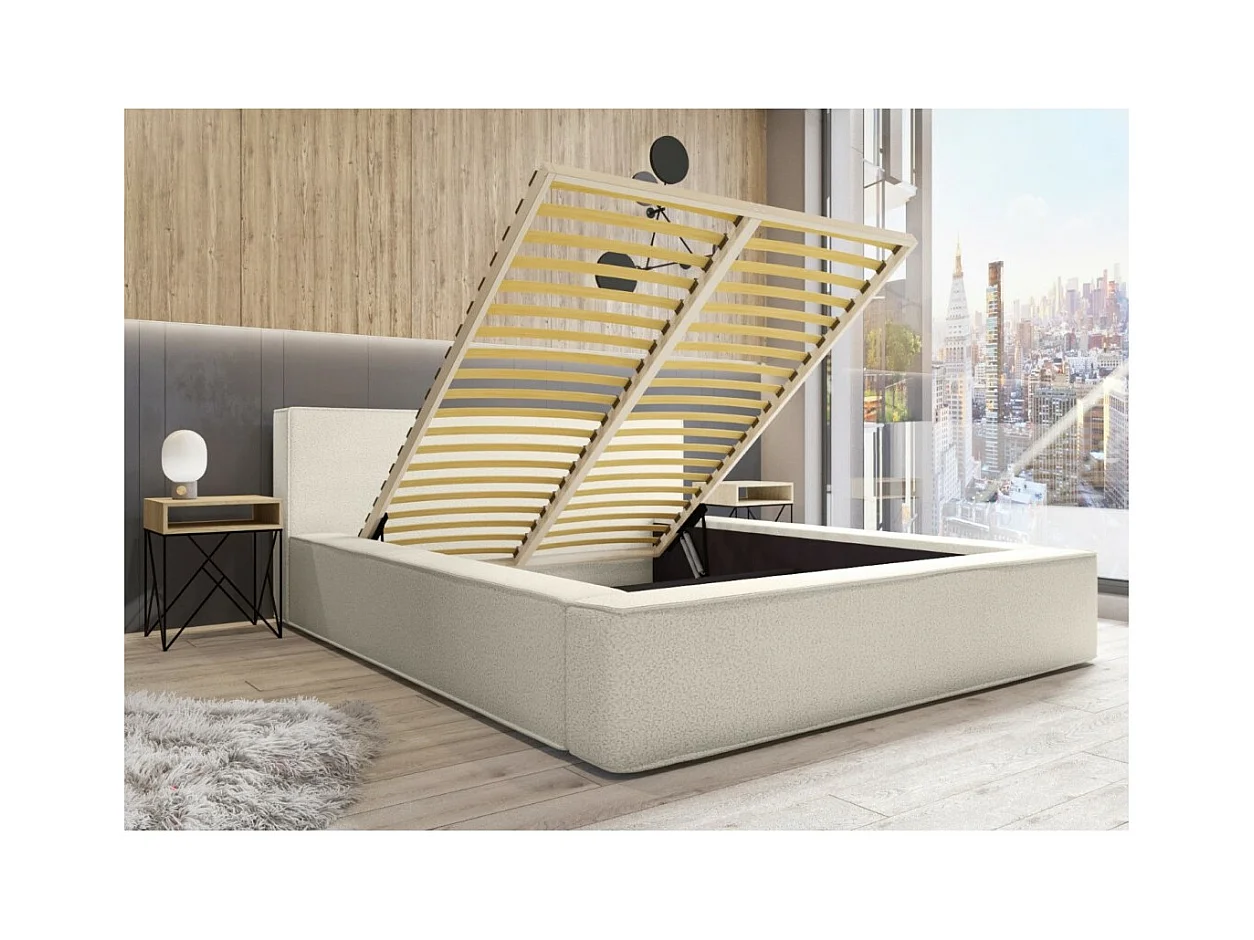 Cama con canapé VERNON - Tela chenilla rizada Lino natural - 160x200 cm - Somier elevable - Diseño de alta gama