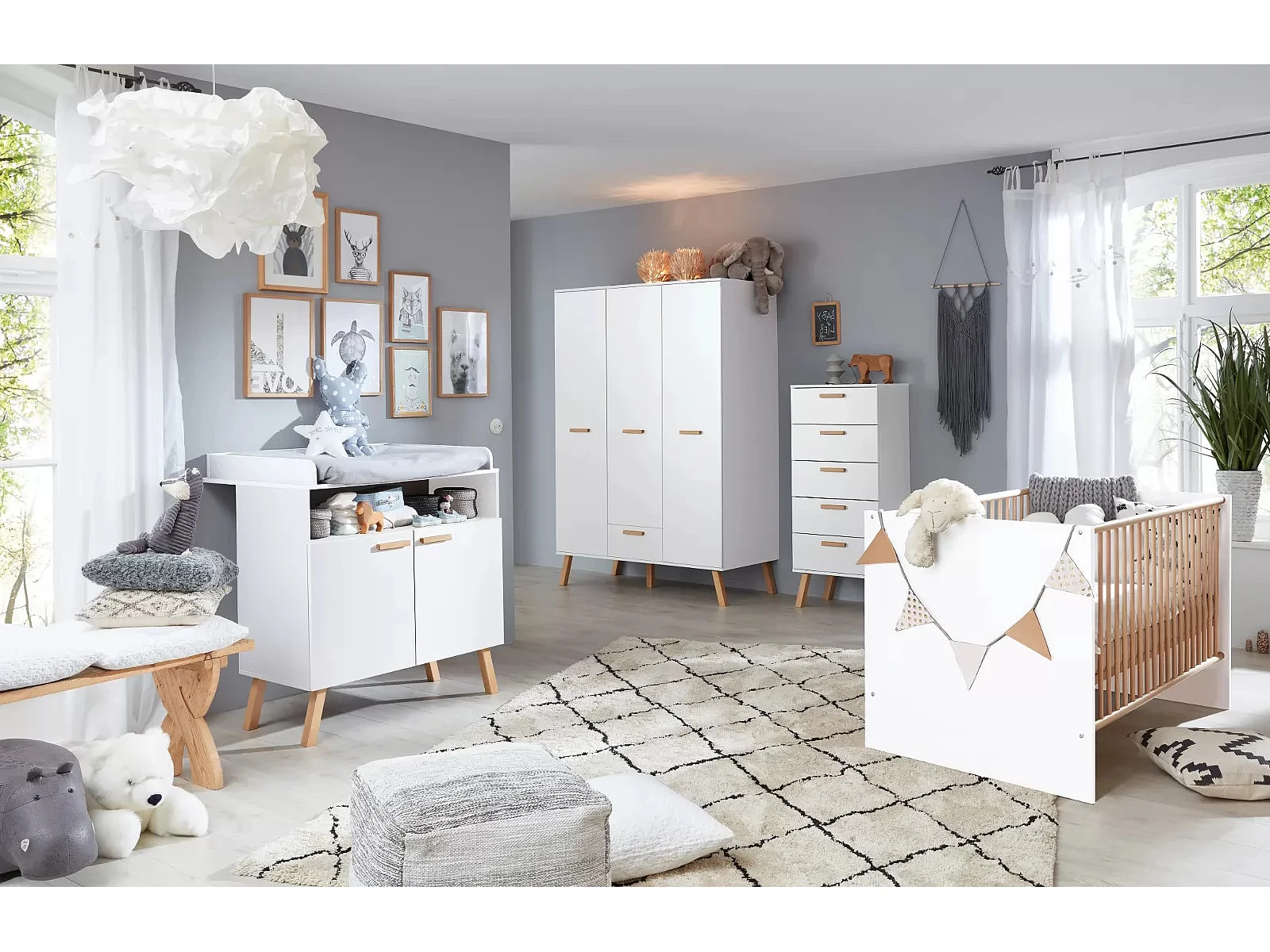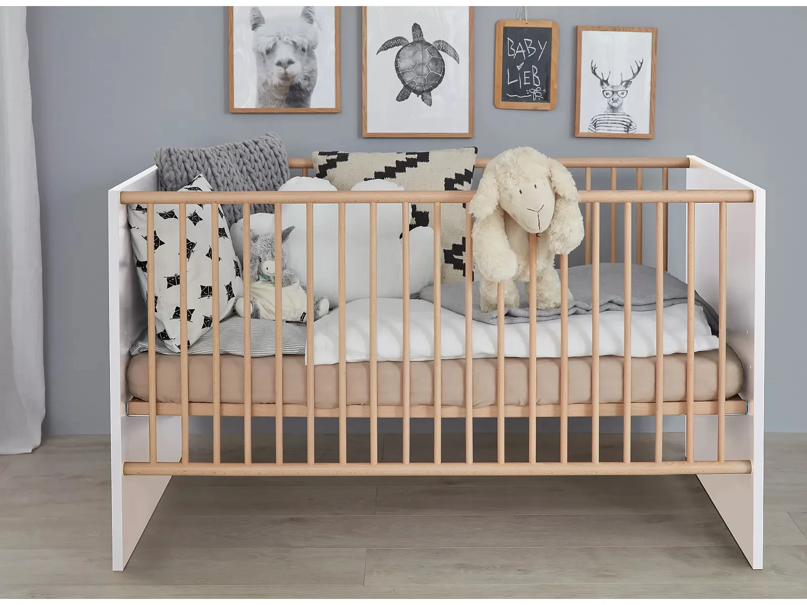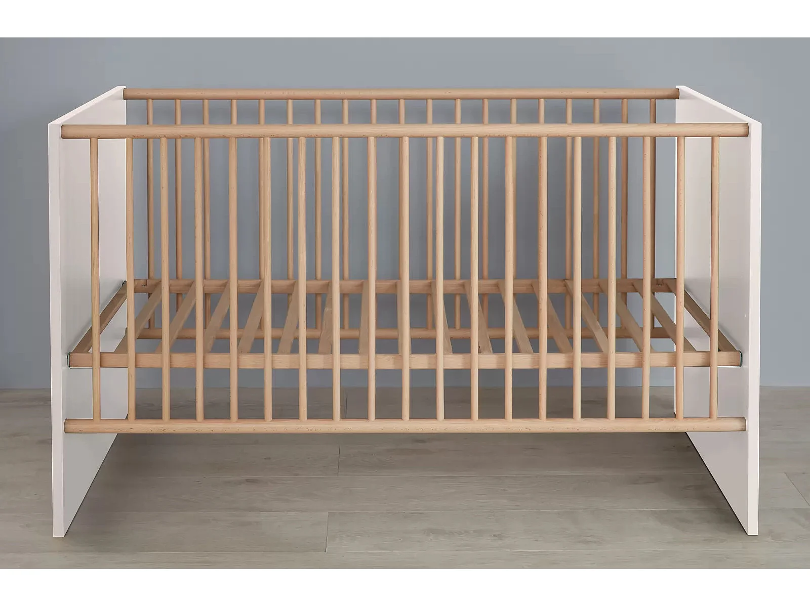Cama con barras 70x140 cm melamina blanca y madera clara Mathys