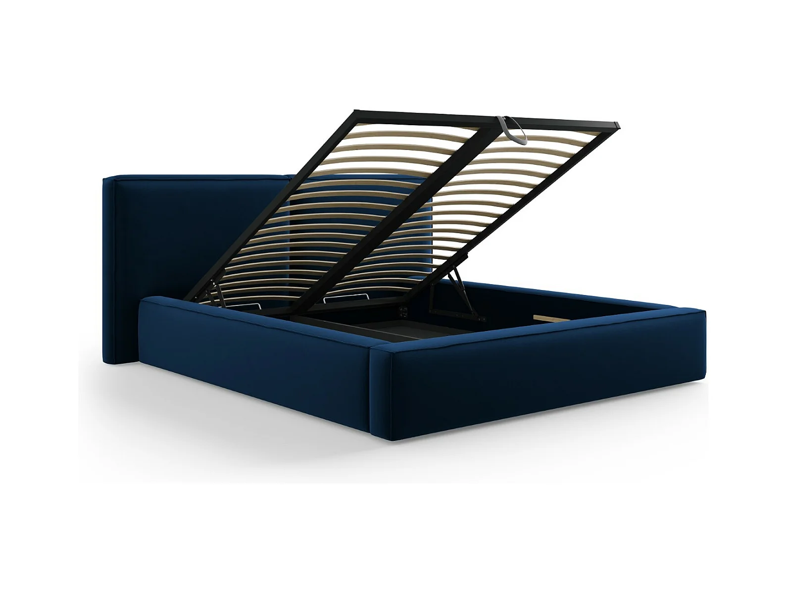 Cosmopolitan Design - Cama con cabecero doble y baúl "Arendal" 200x200cm de terciopelo azul regio - 228x251x97.5cm