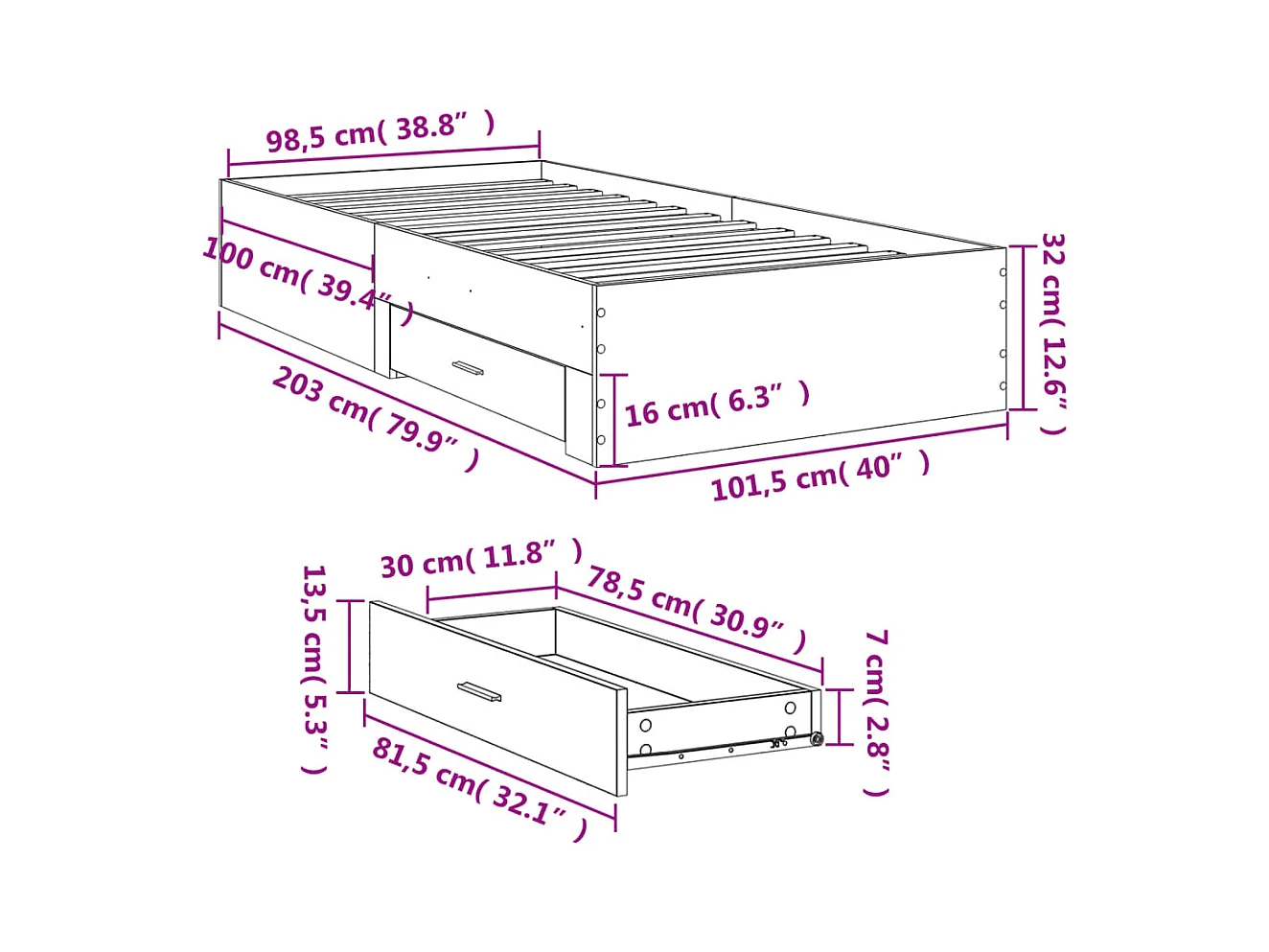 Cama con cajón madera de ingeniería blanco 100x200 cm