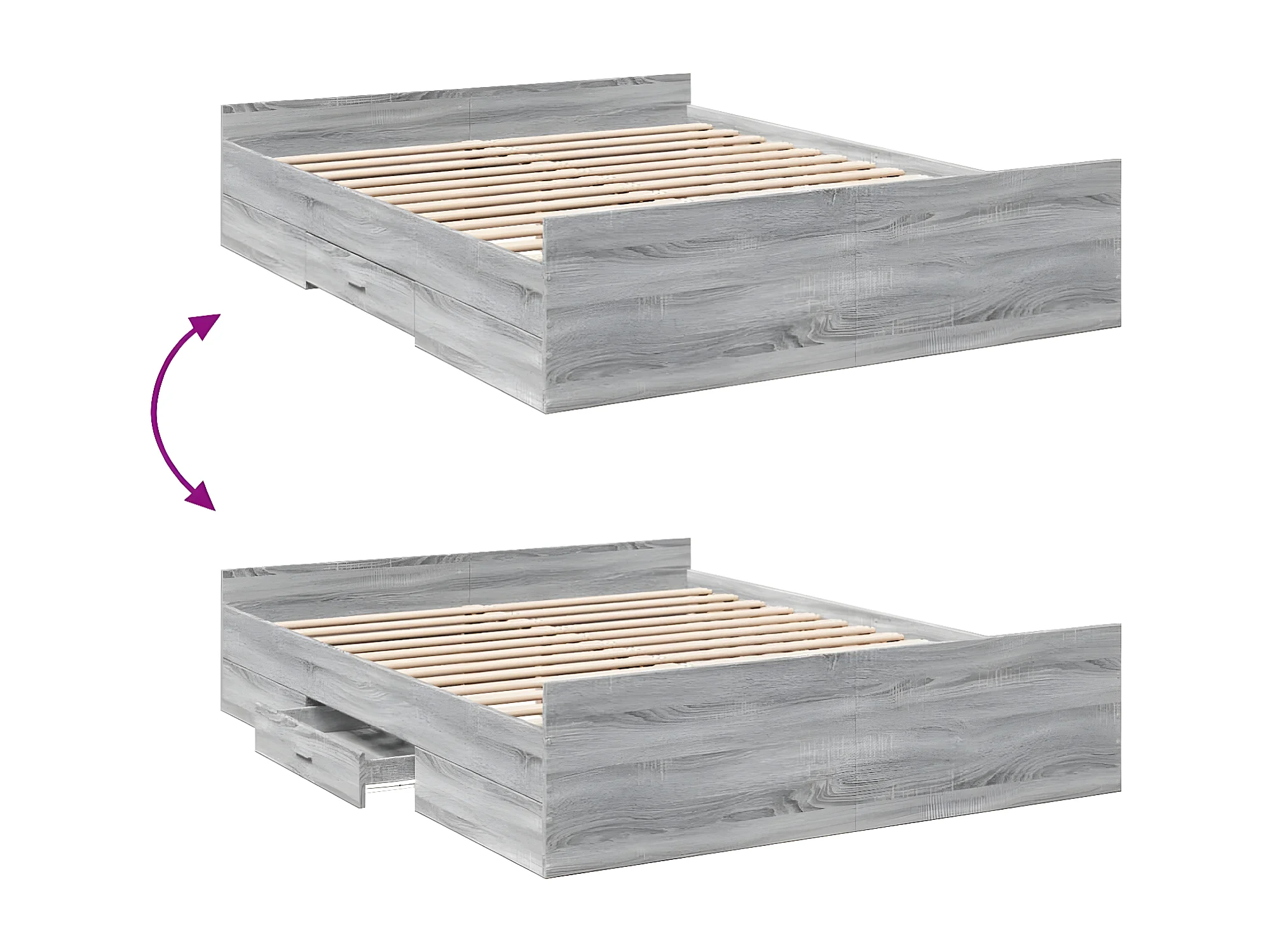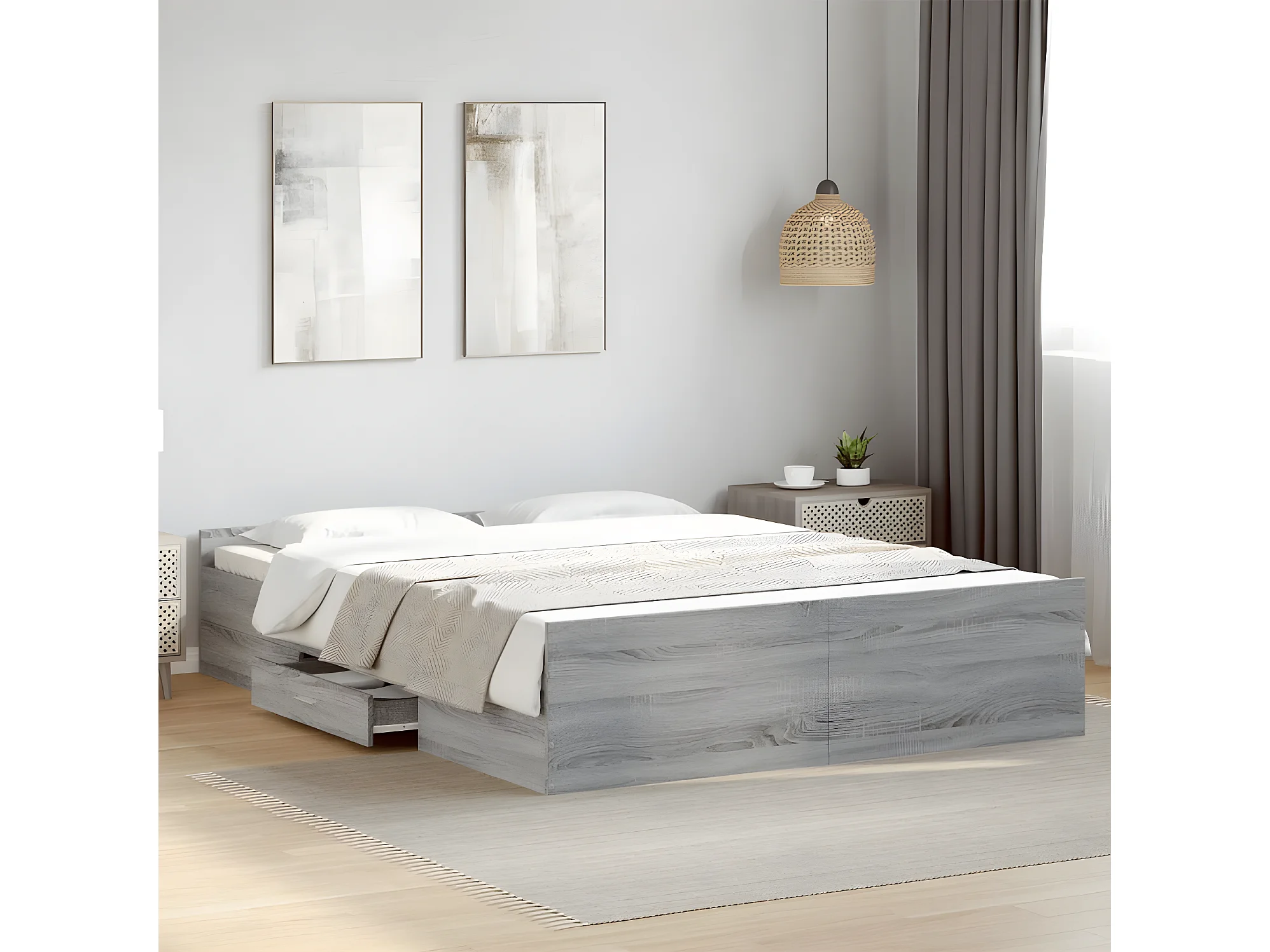 Cama con cajones madera ingeniería gris Sonoma 160x200 cm
