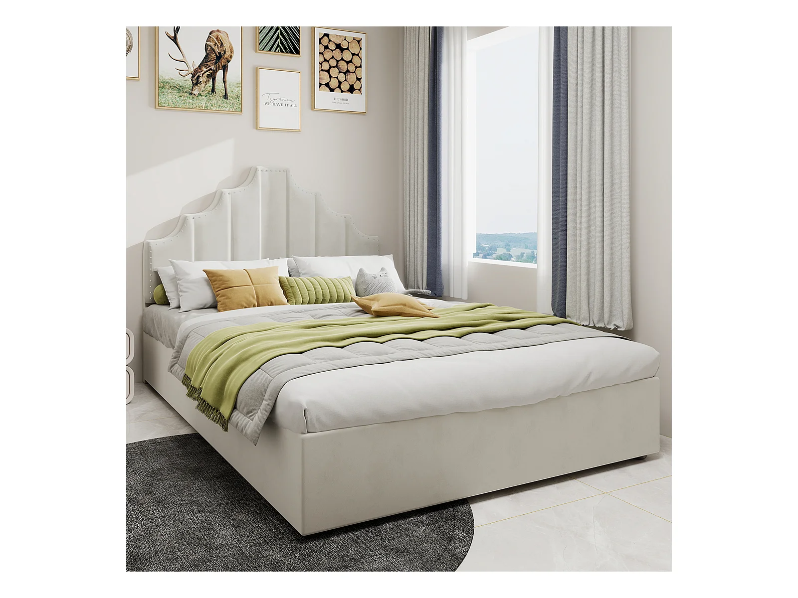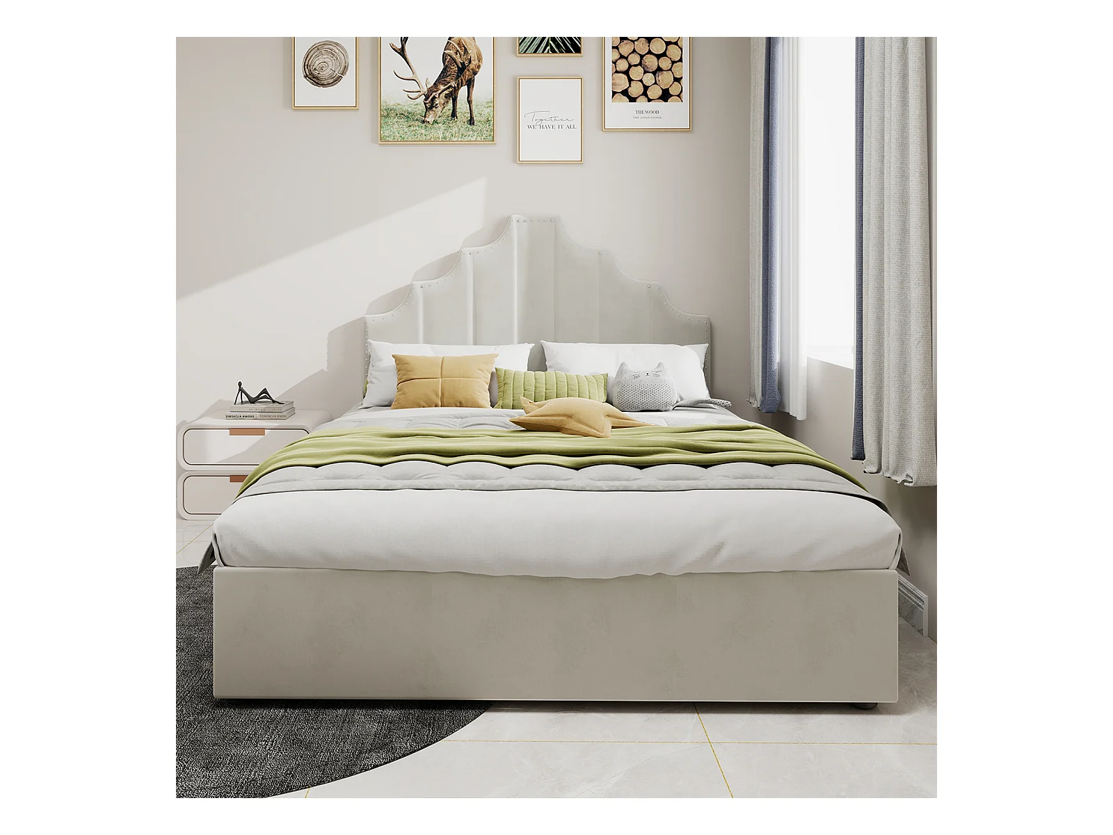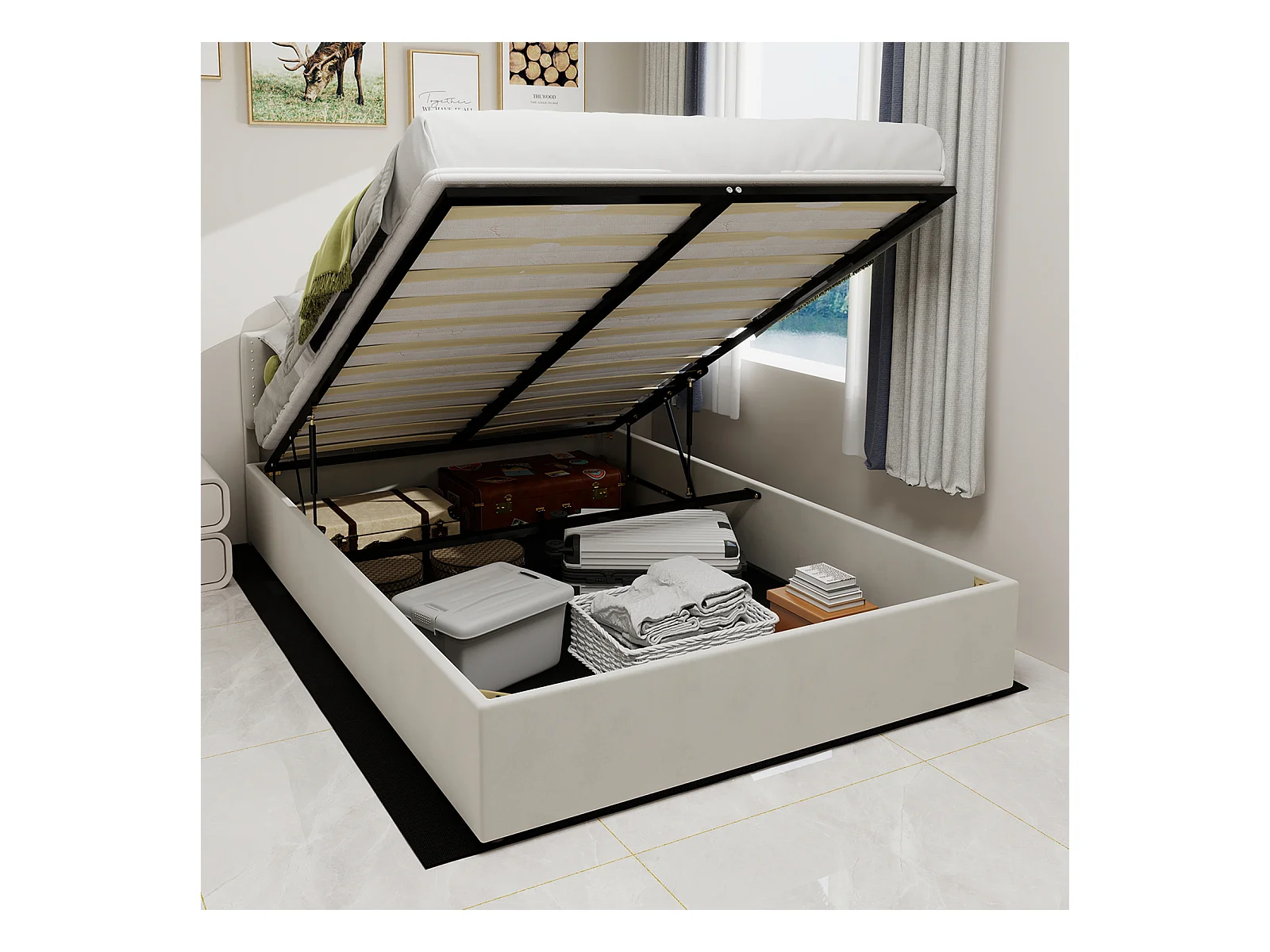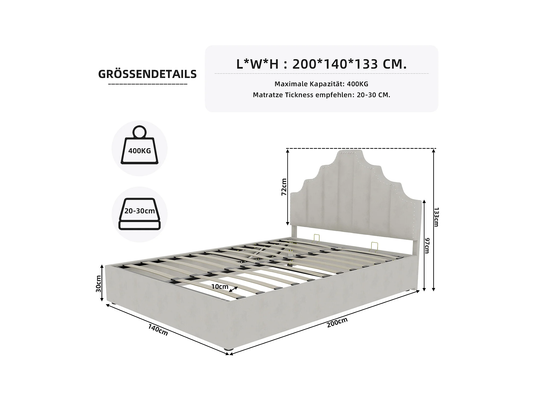 Cama con canapé 140 x 200 cm - Cama para adultos con cabecero suave y espacio de almacenaje - terciopelo holandés beige - C=colchón no incluido