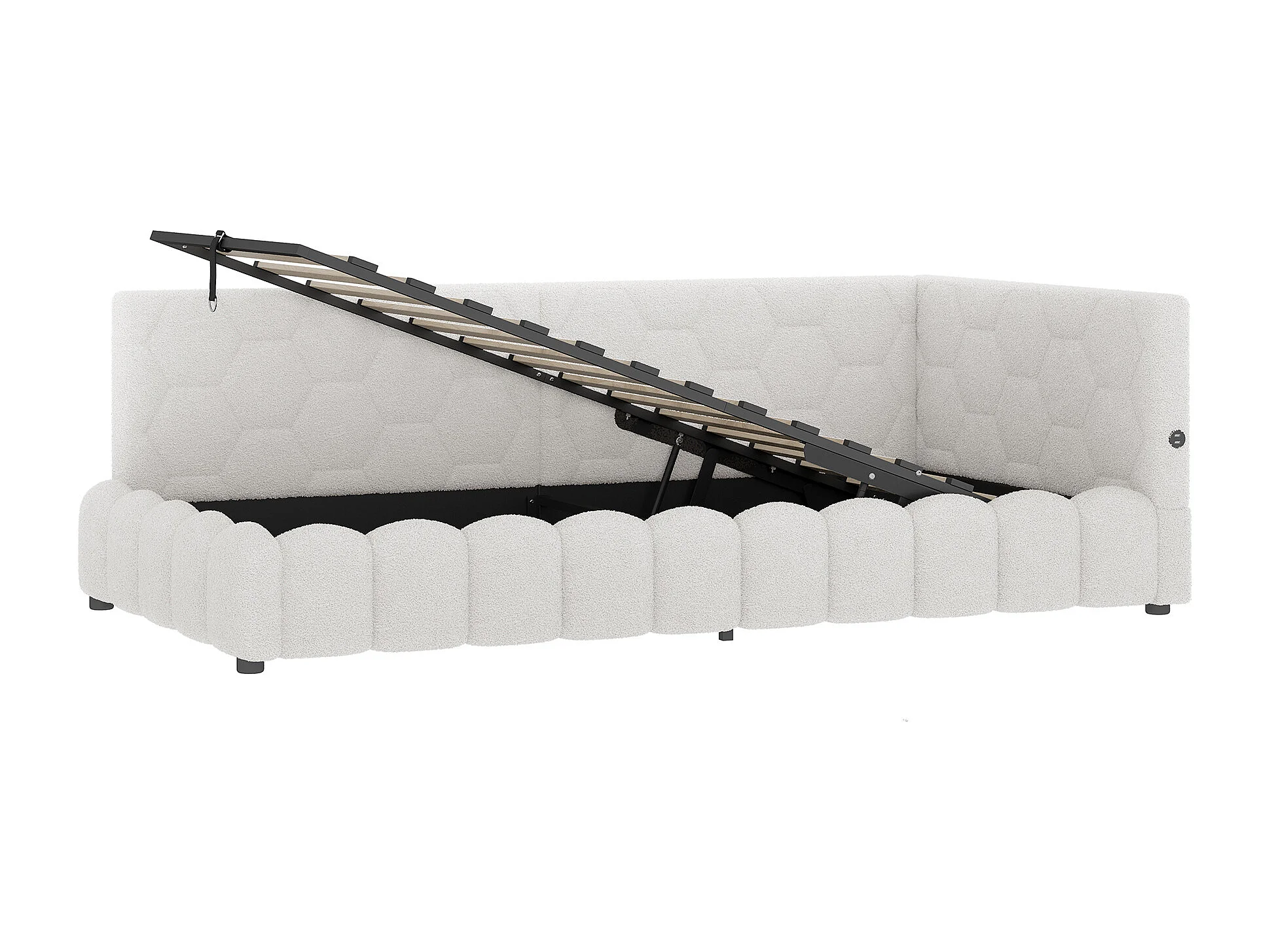 Cama con canapé 90x200 cm - Cama infantil con iluminación LED y carga USB - blanca - sin colchón