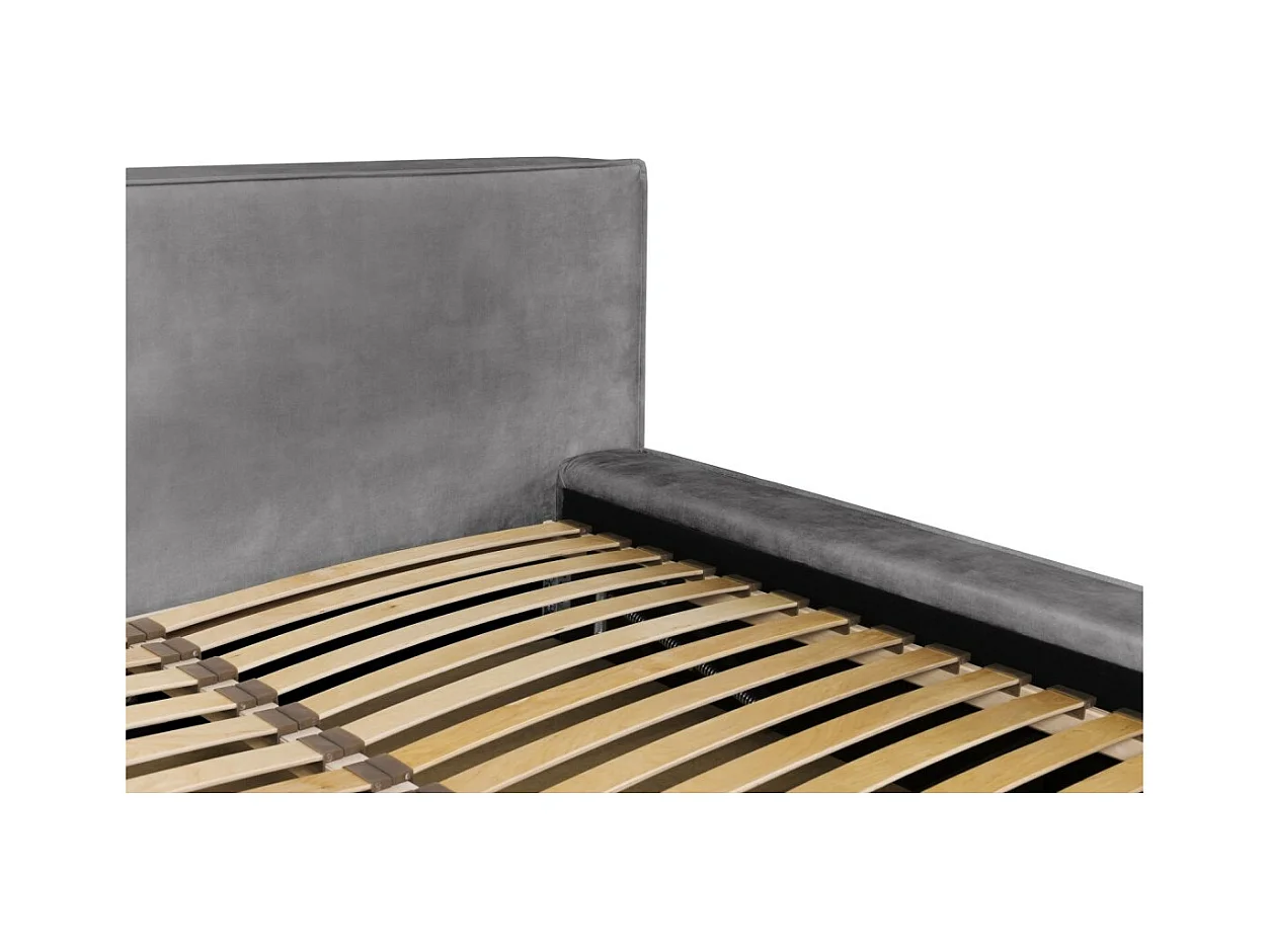 Cama de terciopelo con compartimentos de 140 x 200 cm - Con lámparas de lectura - Con somier de láminas - Gris