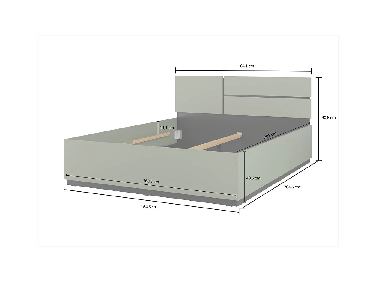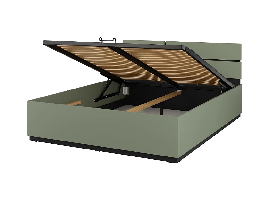 Cama con canapé HAVANA 160x200 cm – Color verde salvia y negro – Diseño práctico y moderno