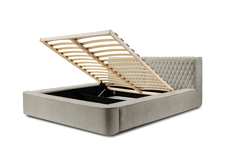 Cama contenedor tapizada en símil piel gris tórtola Mika 140x200