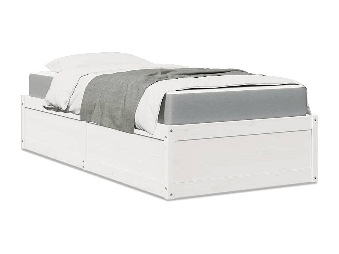 Cama con colchón blanco 90x200 cm madera maciza de pino
