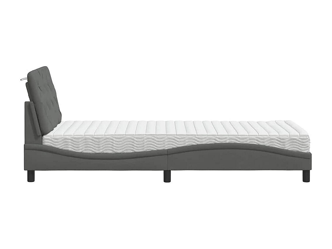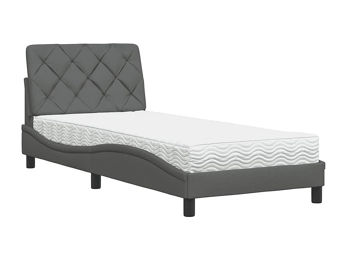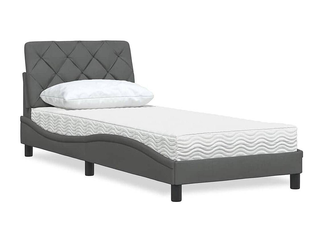 Cama con colchón de tela gris oscuro de 90x200 cm