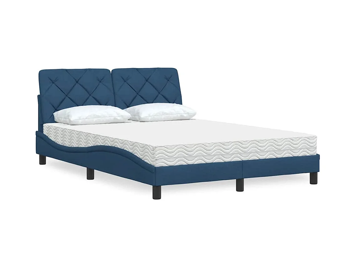 Estructura de cama con LED sin colchón tela azul 140x200 cm