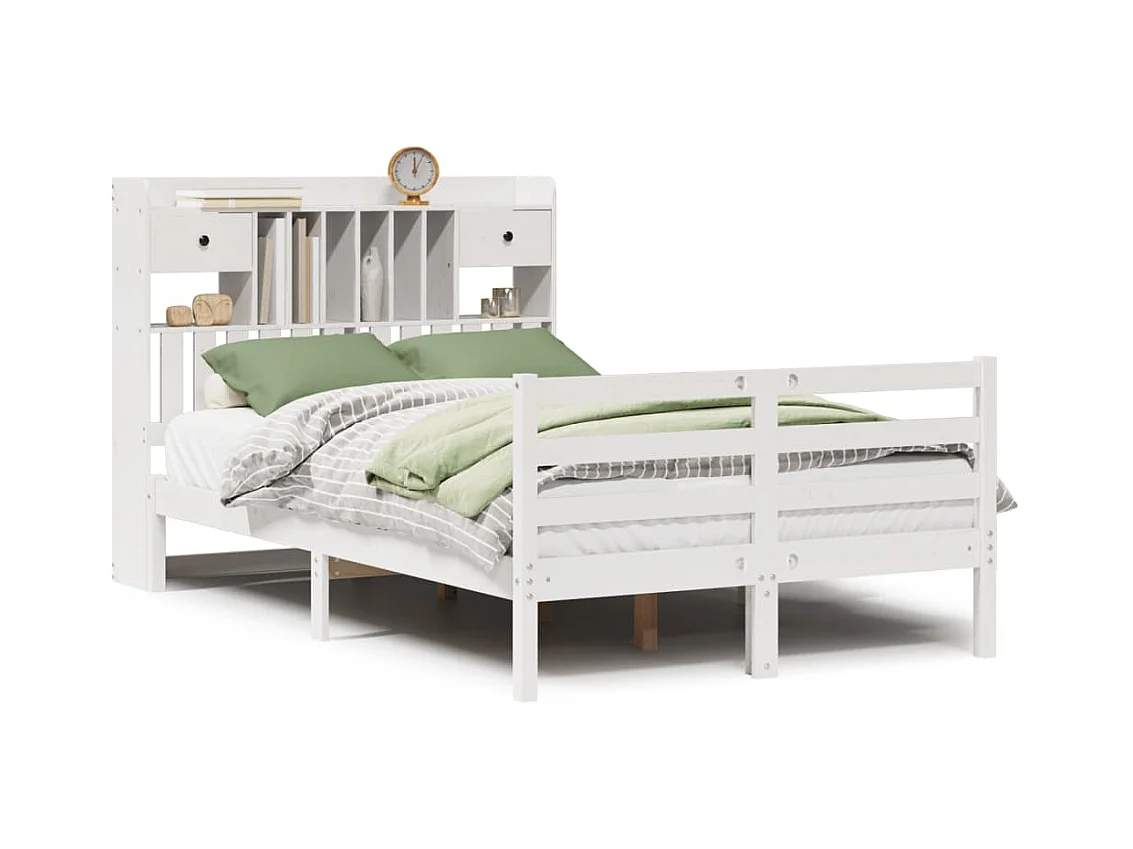 Cama con estantería sin colchón madera maciza blanca 135x190 cm