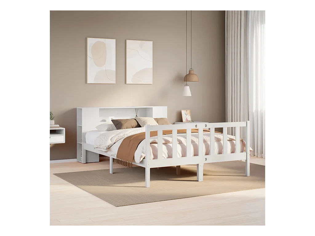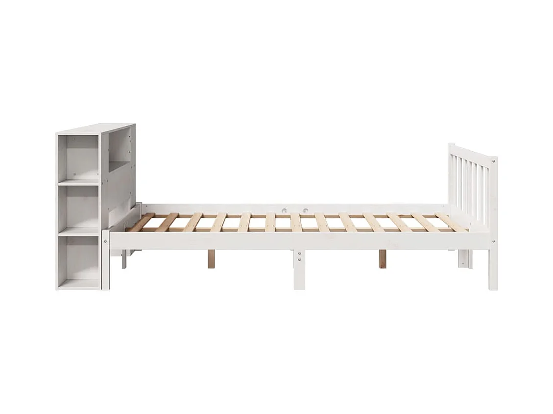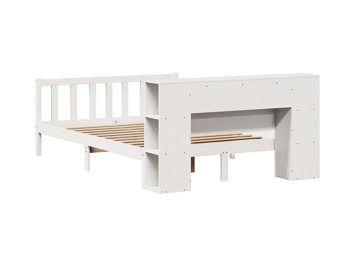 Cama con estantería sin colchón madera maciza blanca 135x190 cm