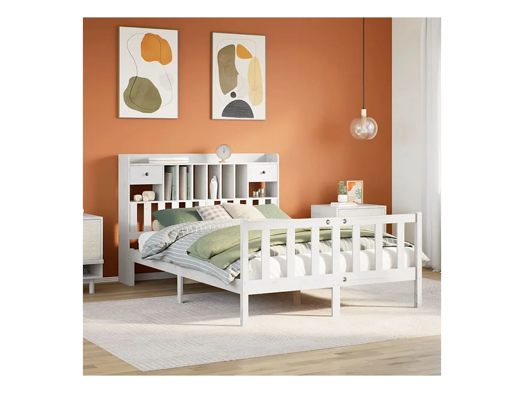 Cama con estantería sin colchón madera maciza blanca 160x200 cm