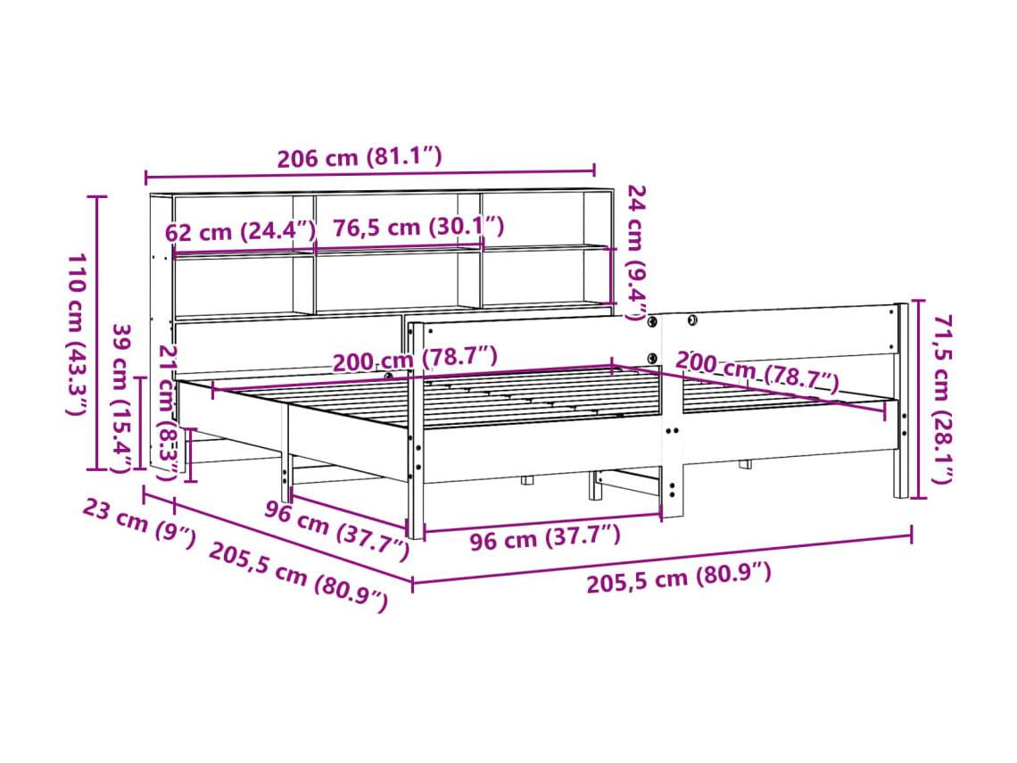 Cama con estantería sin colchón madera maciza blanca 200x200 cm