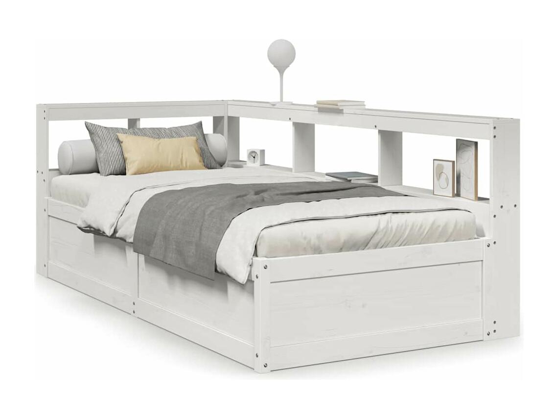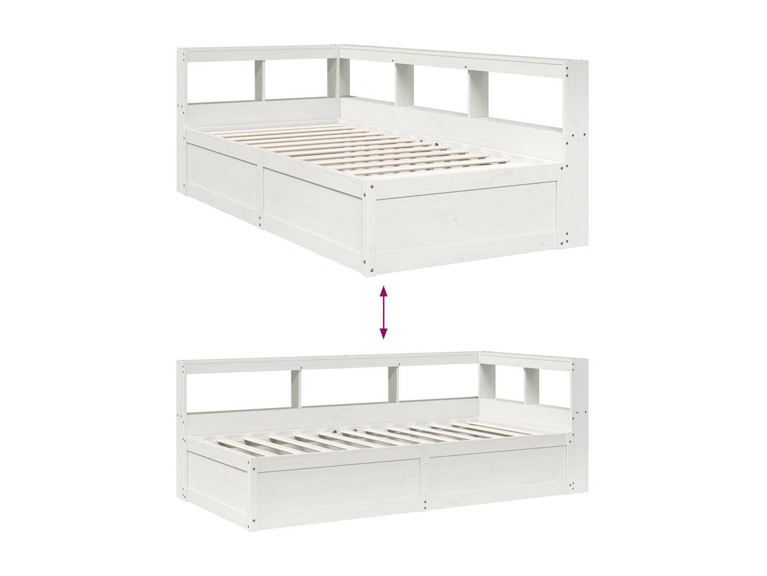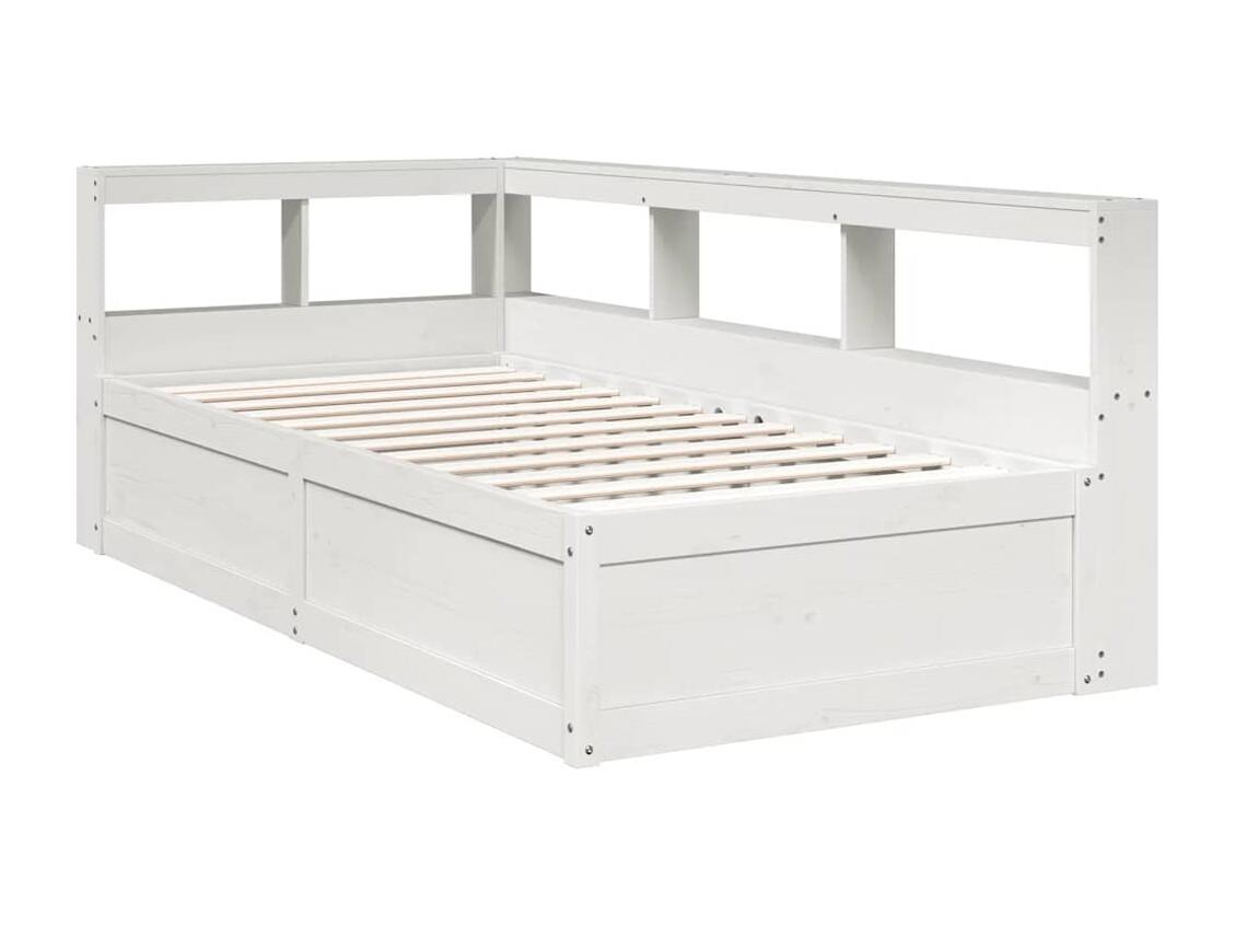 Cama con estantería sin colchón madera maciza blanca 75x190 cm
