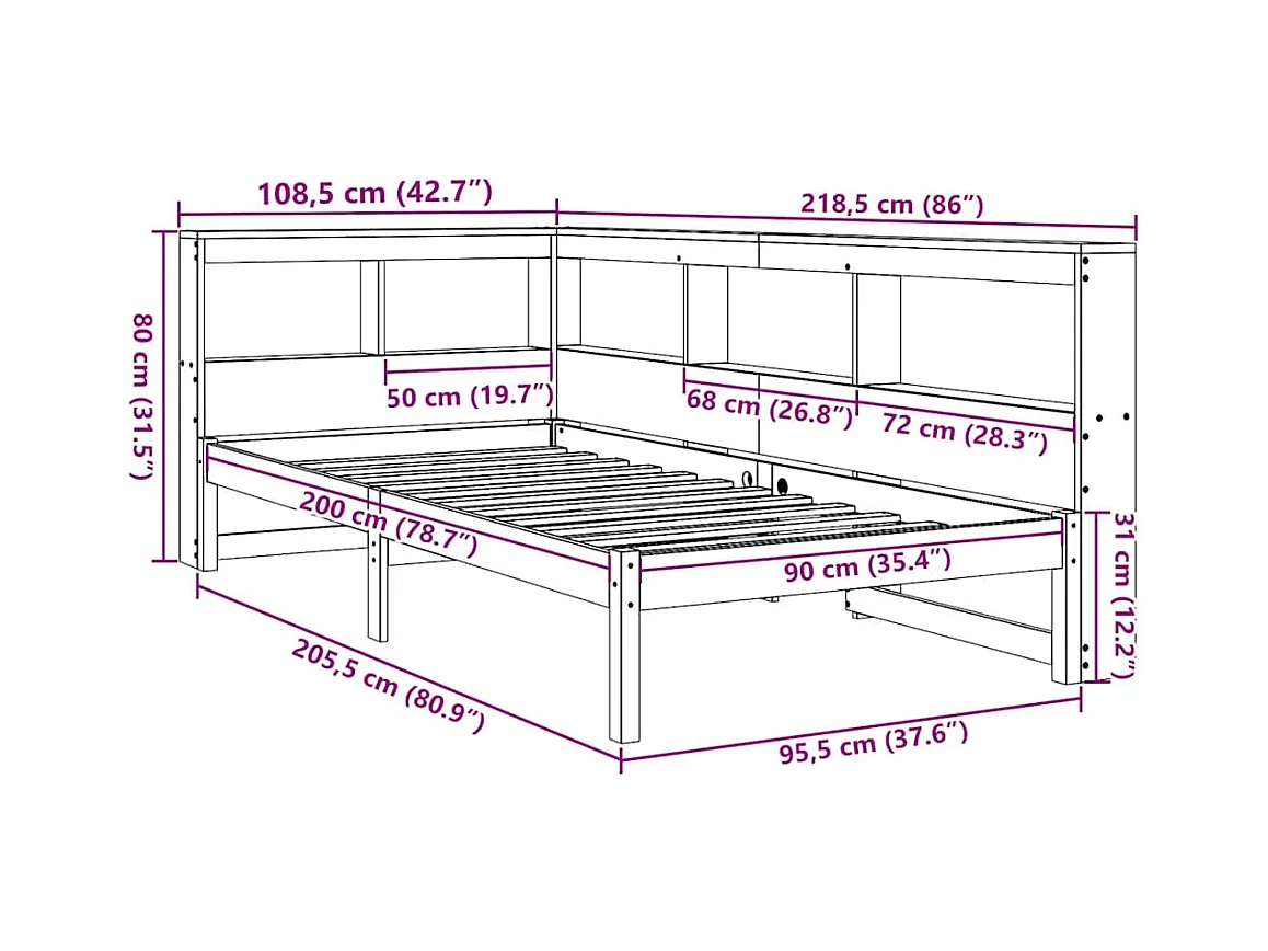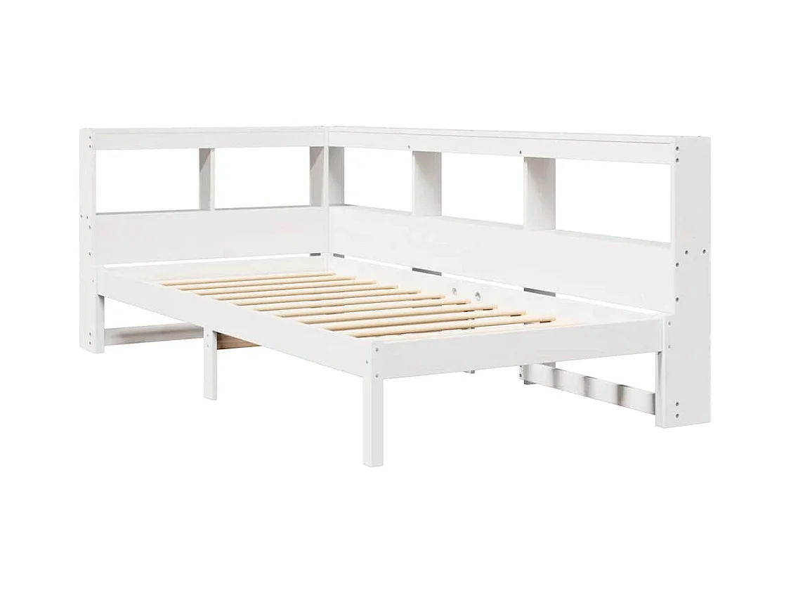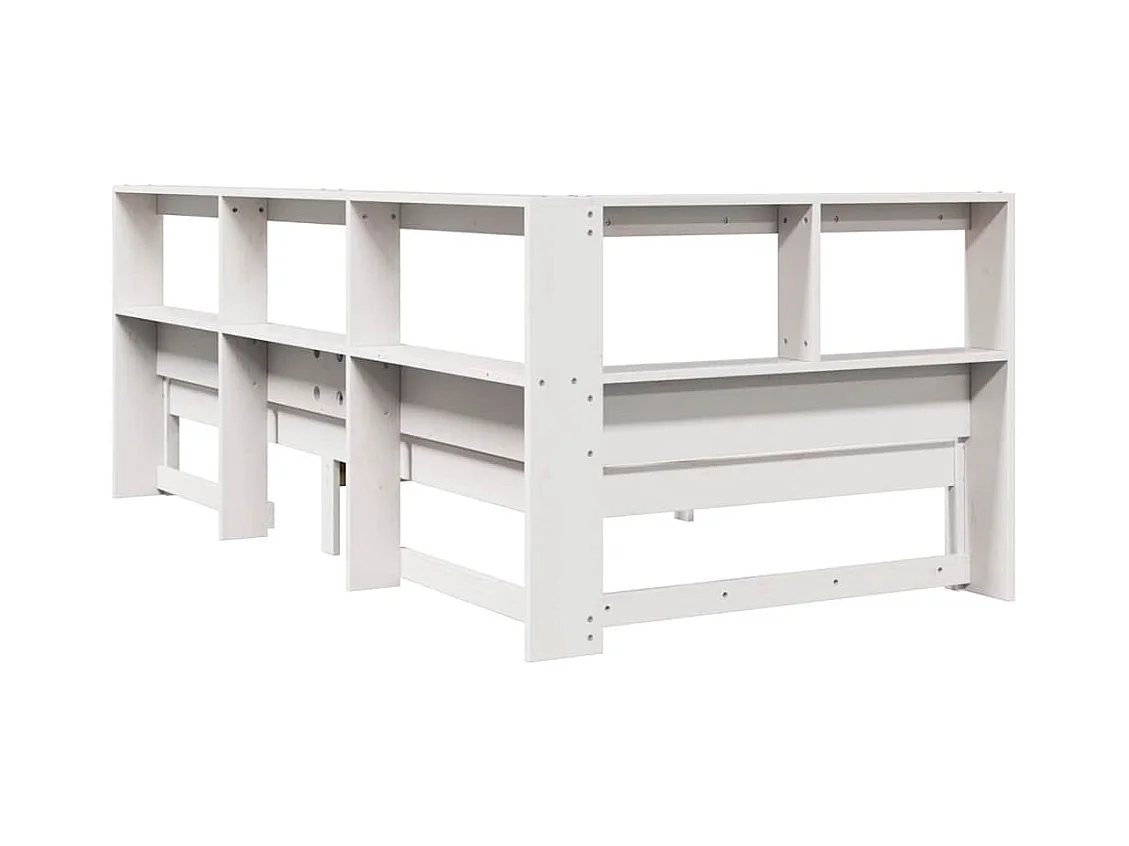 Cama con estantería sin colchón madera maciza blanco 90x200 cm