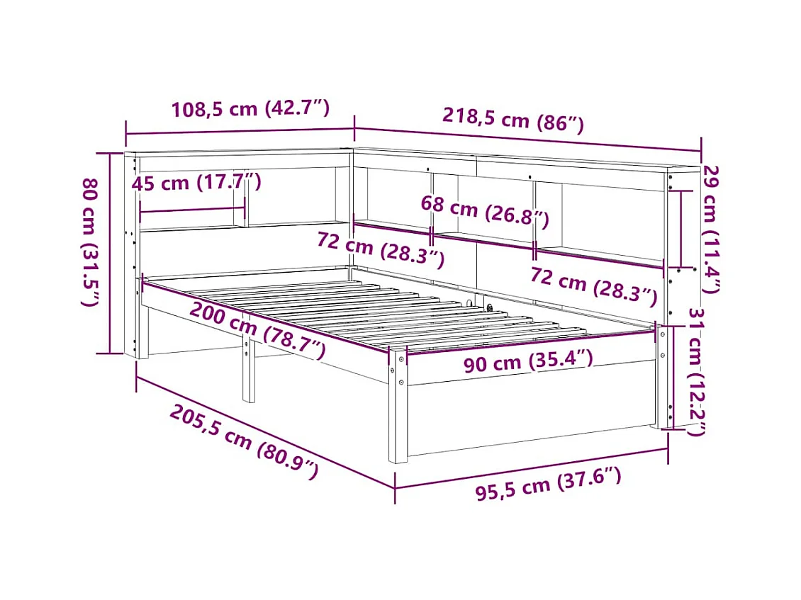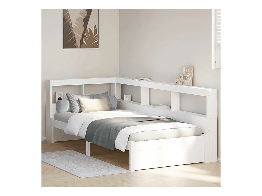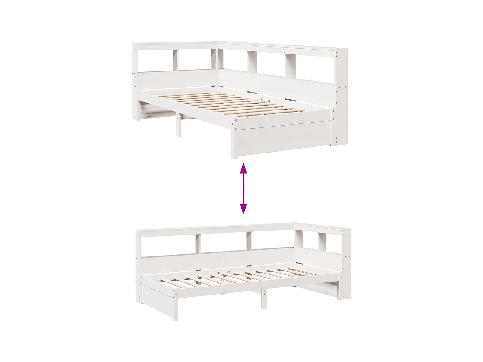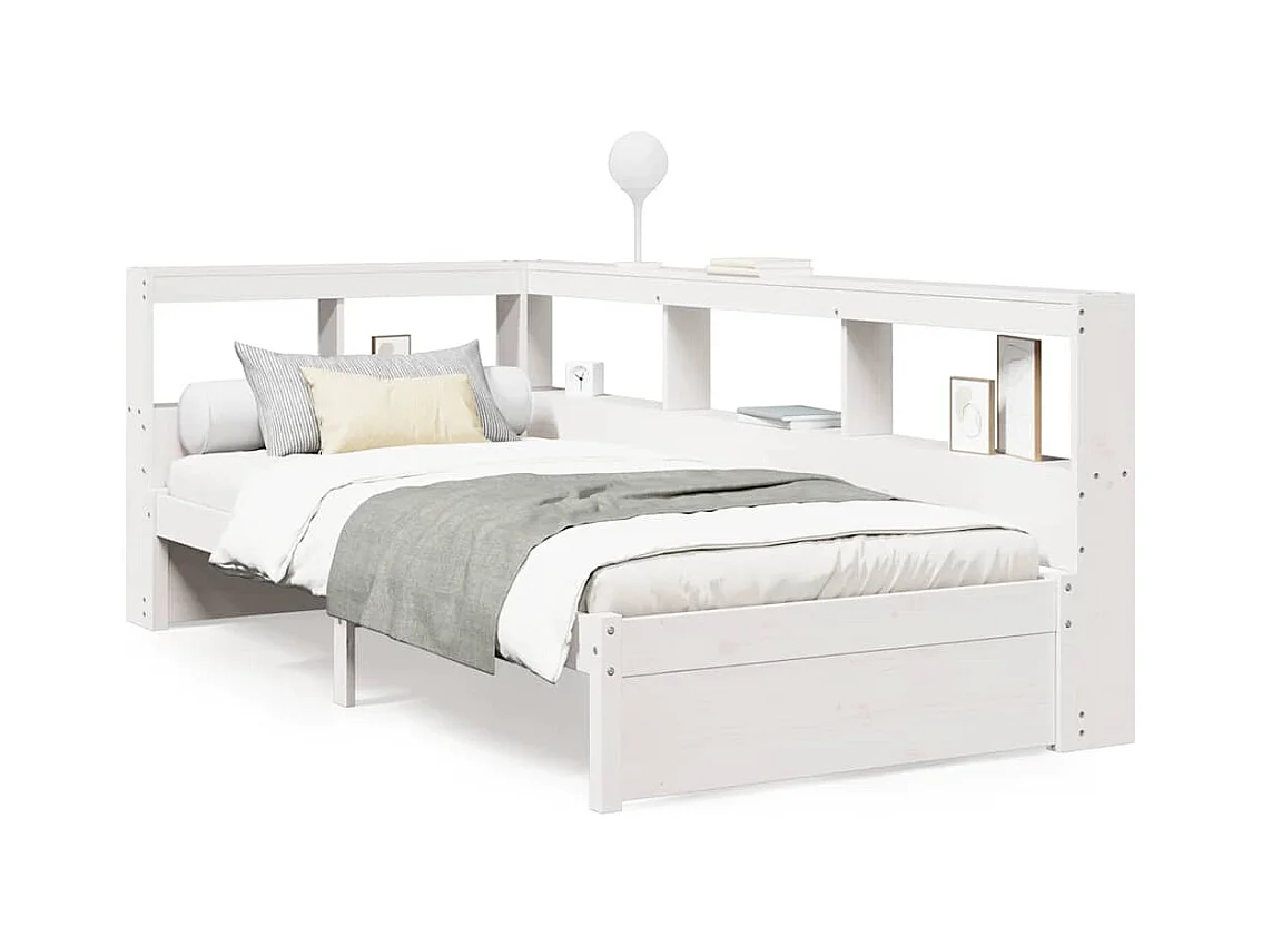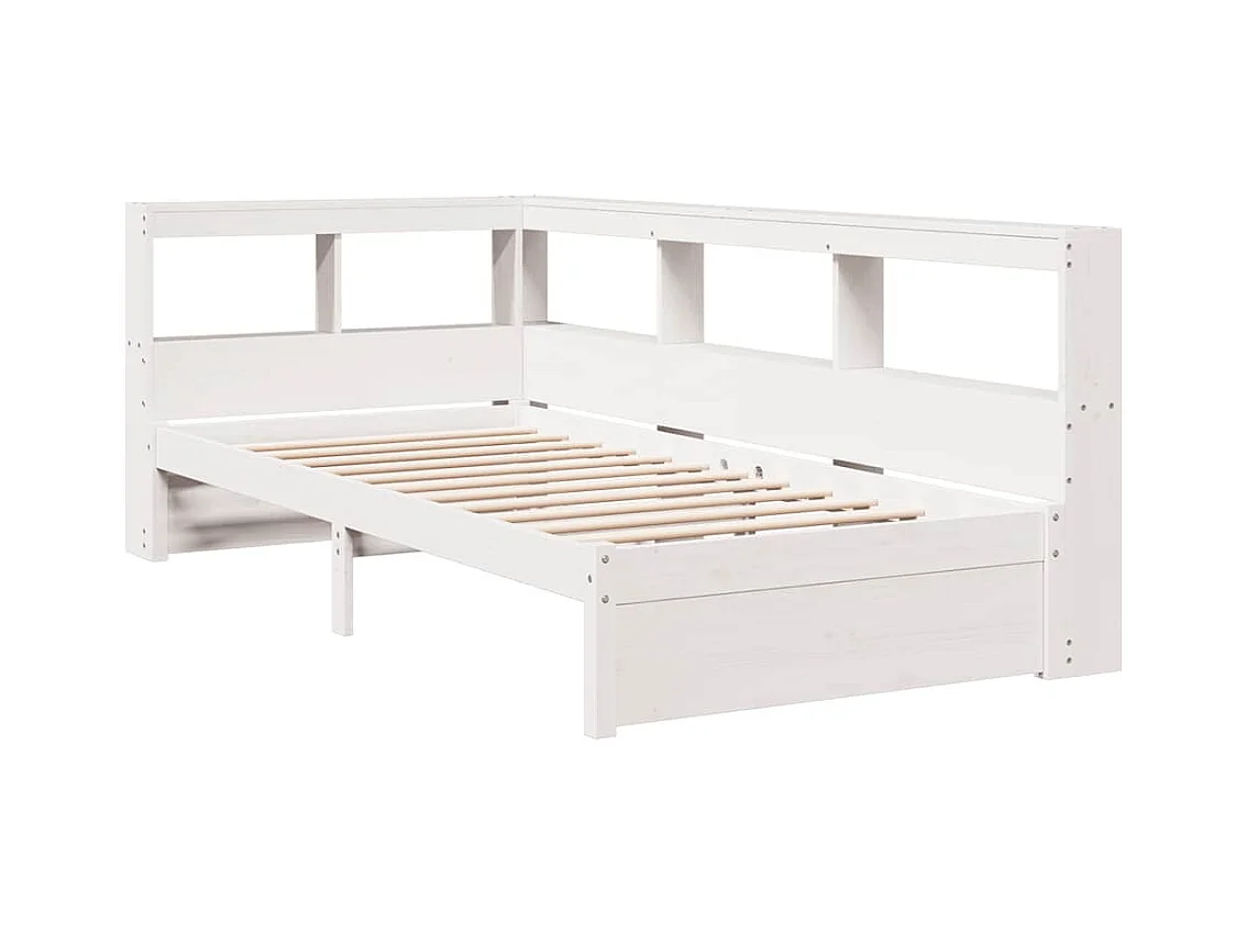 Cama con estantería sin colchón madera maciza blanco 90x200 cm