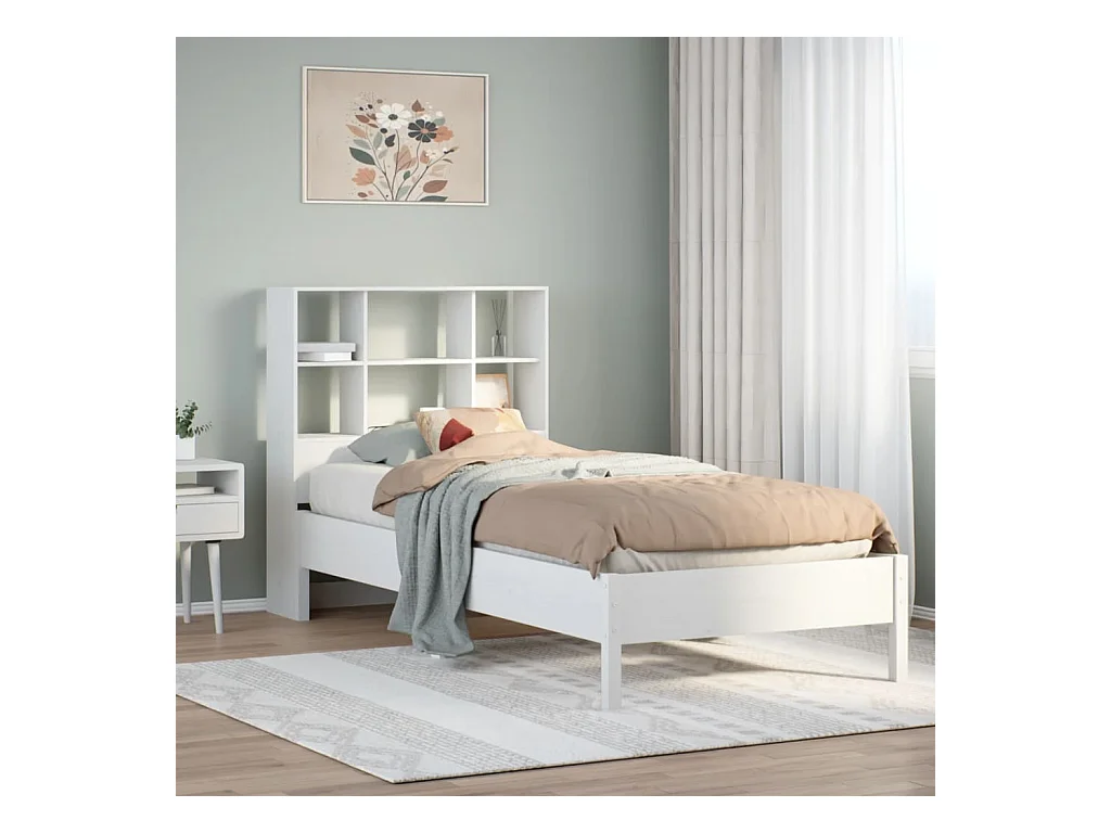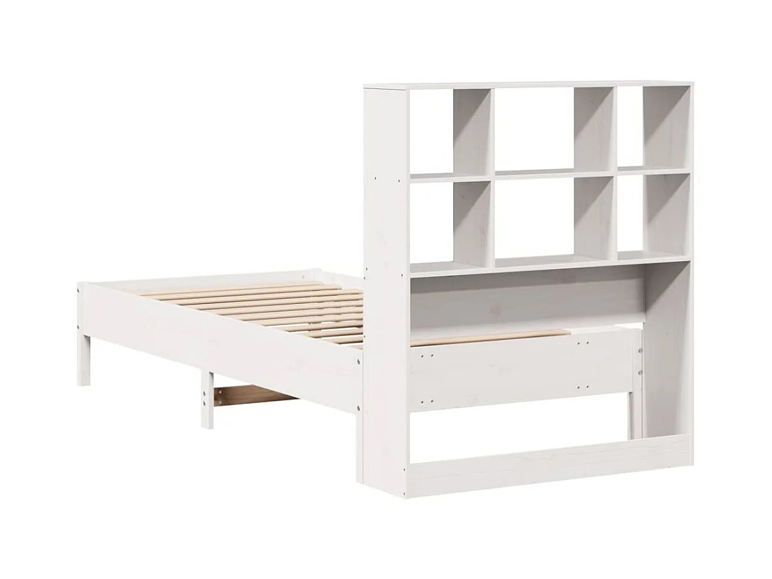 Cama con estantería sin colchón madera maciza blanca 90x190 cm