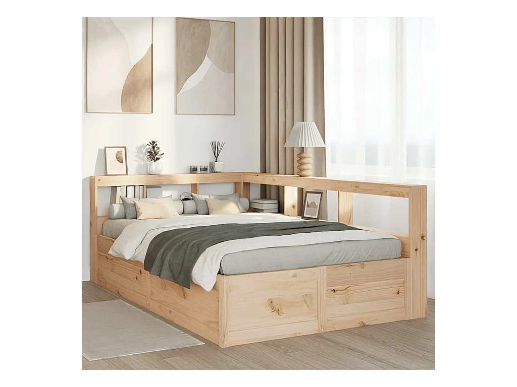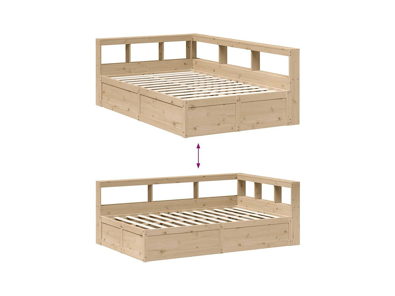 Cama con estantería sin colchón madera maciza de pino 120x190cm