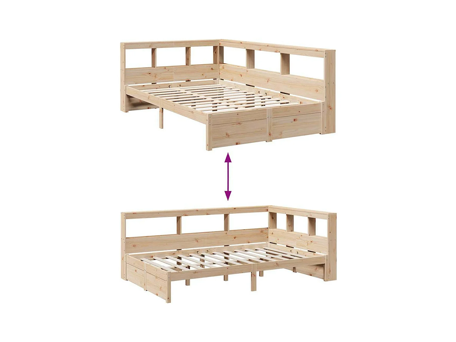 Cama con estantería sin colchón madera maciza de pino 120x200cm