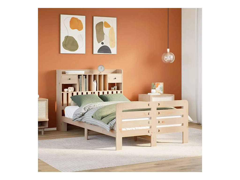 Cama con estantería sin colchón madera maciza de pino 135x190cm