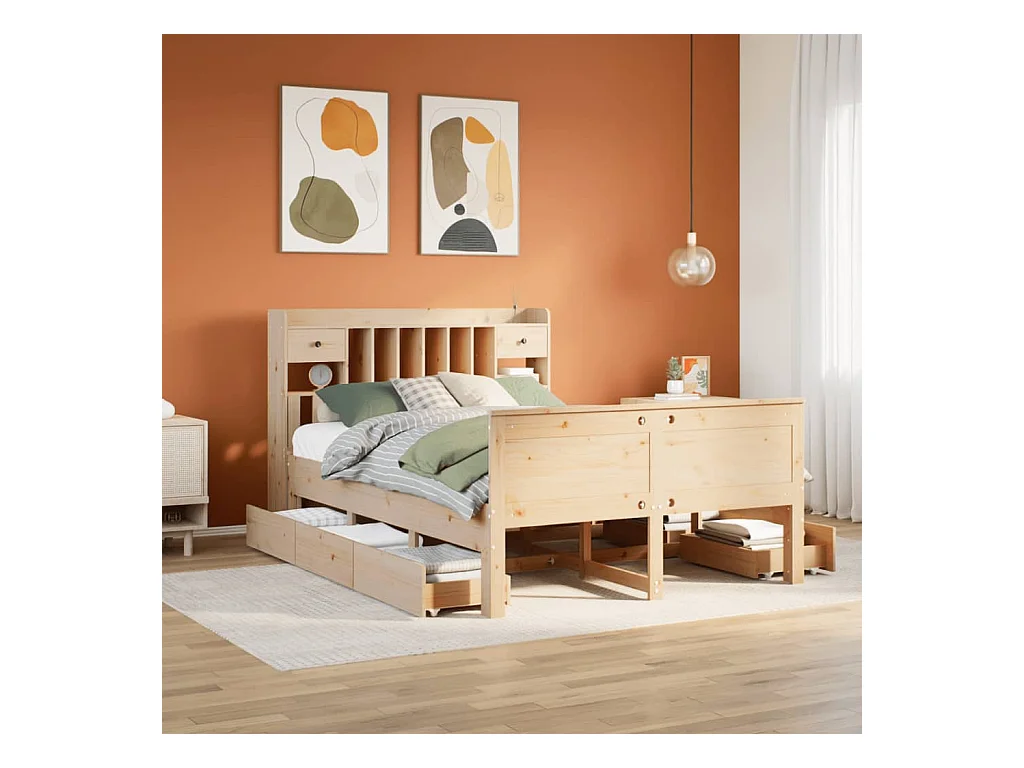Cama con estantería sin colchón madera maciza de pino 150x200cm