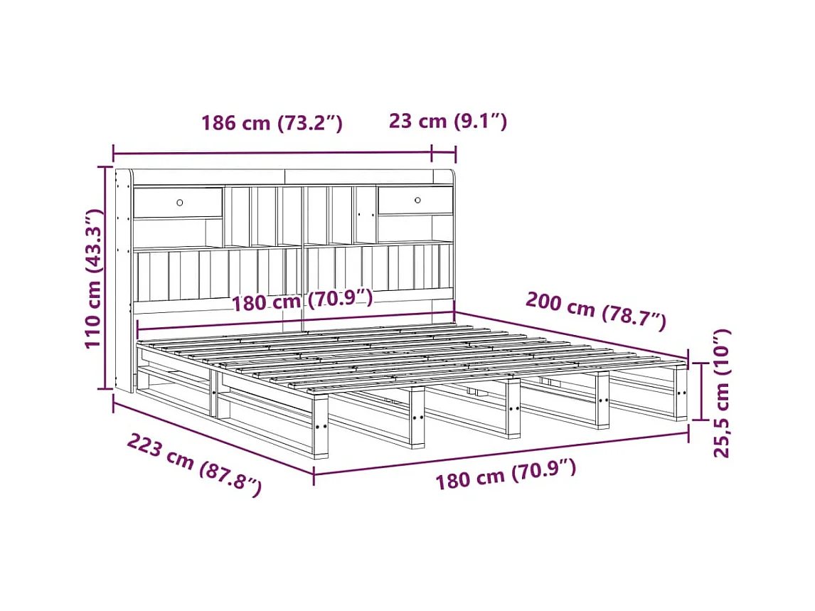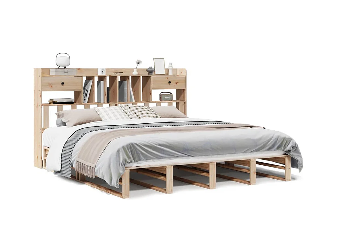 Cama con estantería sin colchón madera maciza de pino 180x200cm