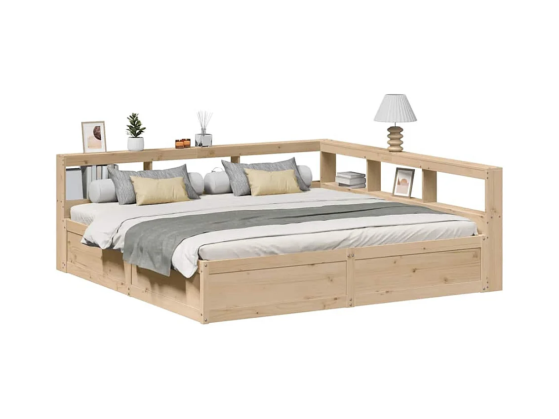 Cama con estantería sin colchón madera maciza de pino 200x200cm