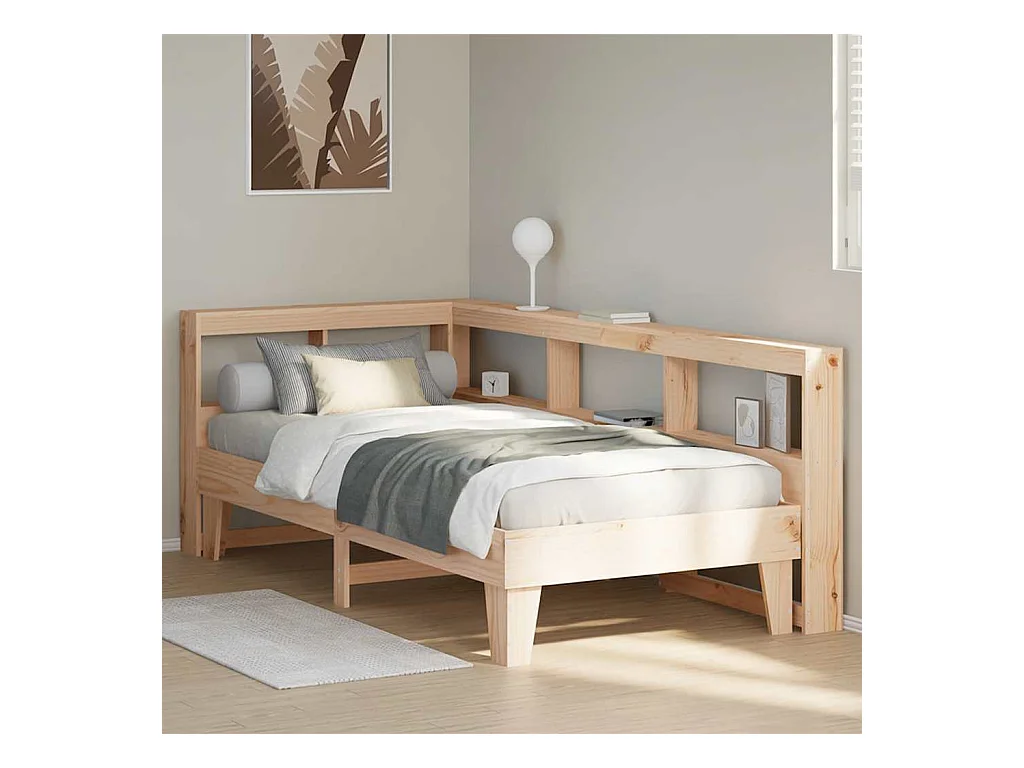 Cama con estantería sin colchón madera maciza de pino 90x190 cm