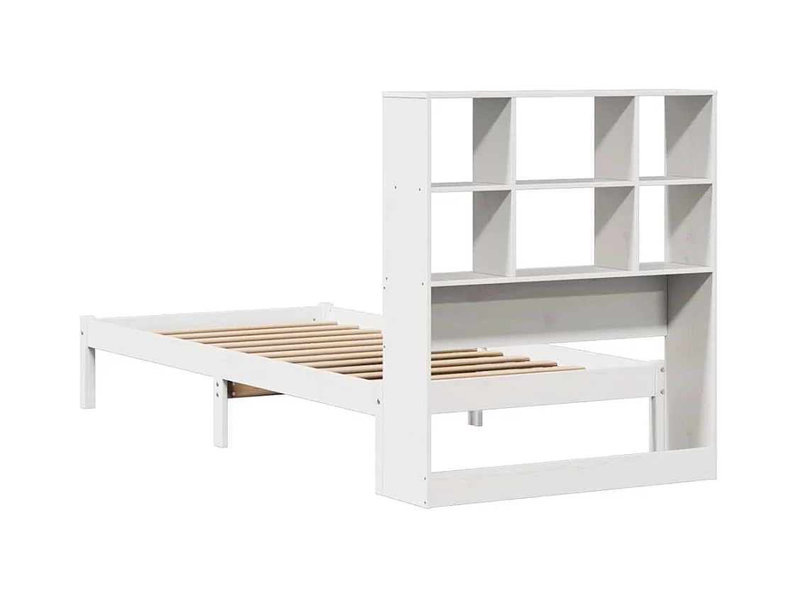 Cama con estantería sin colchón madera maciza blanca 90x190 cm